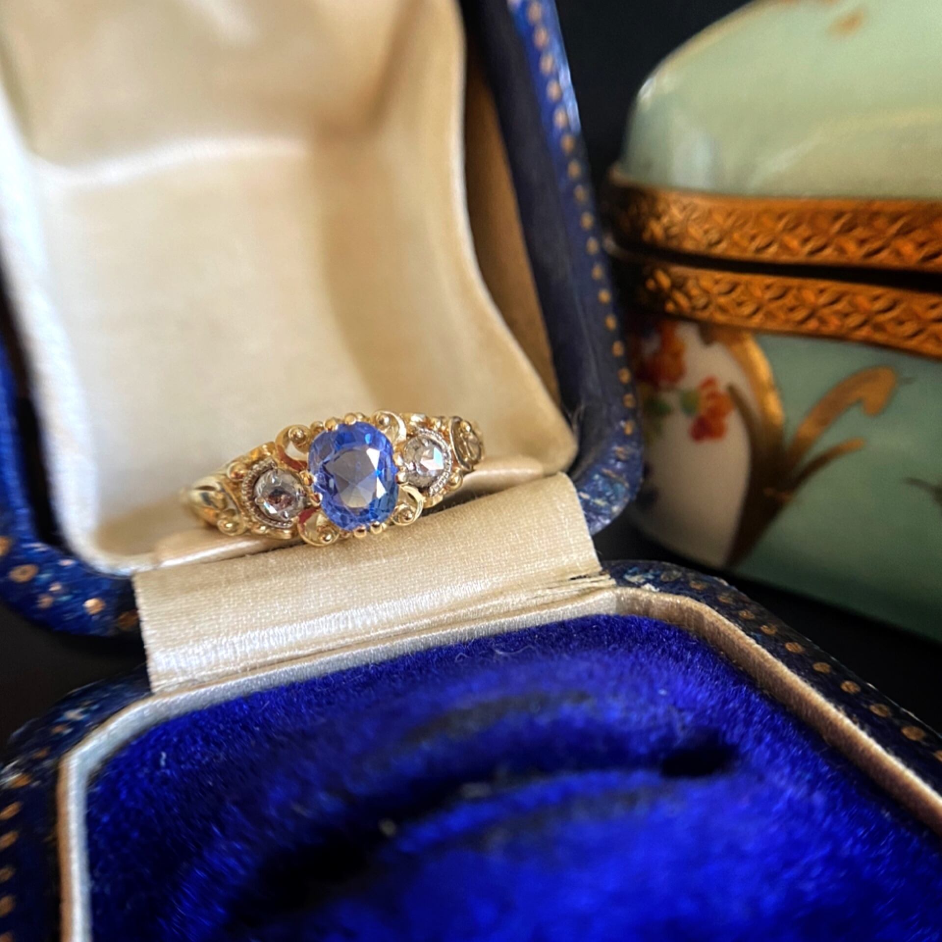 ナポレオン三世第二帝政期ナチュラルサファイア&ダイヤモンドリング