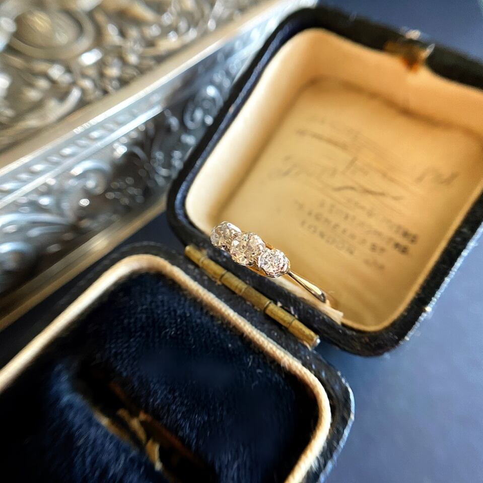 オールドヨーロピアンカットダイヤモンドトリロジーリング