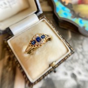 サファイア&ダイヤモンドスリーストーンエドワーディアンリング