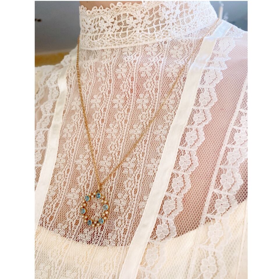 可愛いけれどもその甘みとエドワーディアンらしい貴族的な雰囲気とのバランスが絶妙なペンダントは季節を問わずにお召し頂けます。春夏はレイシーなブラウスに、秋冬はふんわりニットに。