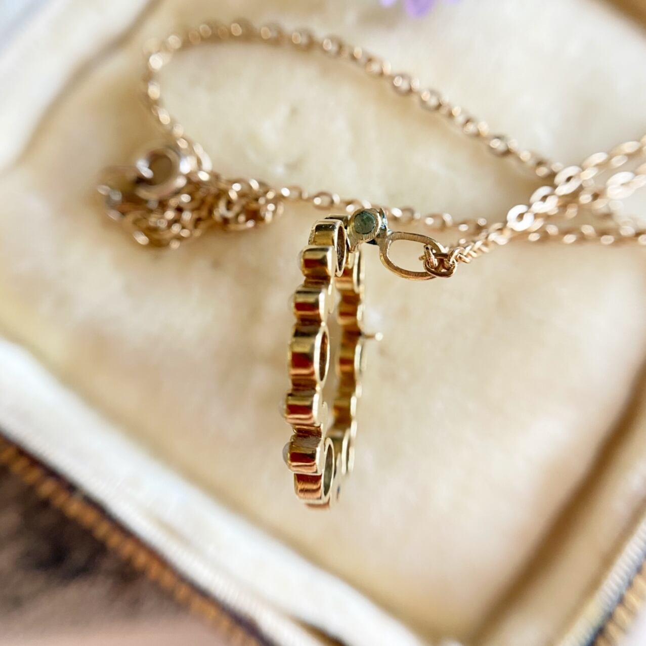 エドワーディアンらしく可憐で丁寧な作りに、小さいながらも贅沢な気持ちにさせてくれるペンダントは、宝石を囲った全ての縁に見事なミルグレインが施され、限界までの繊細な細工と限りなく優しい色合いでフェミニンな雰囲気を表したひと品です。