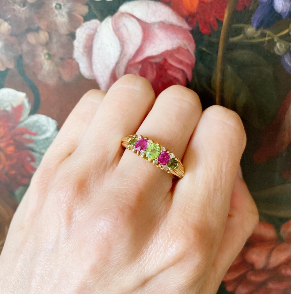 ペリドット&ルビー&ダイヤモンド ファイブストーンリング
