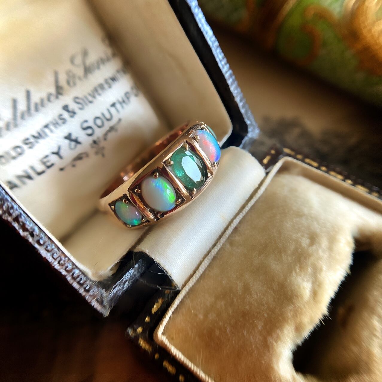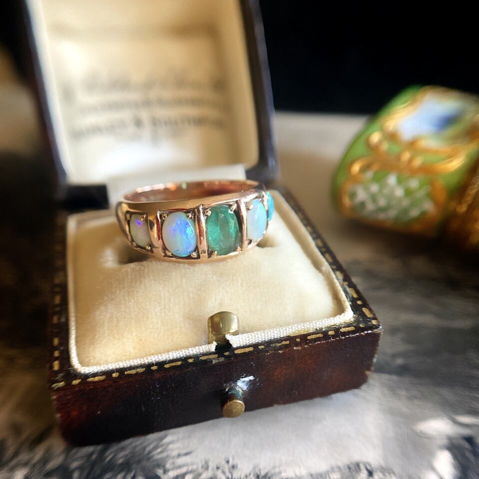 エメラルド&オパールファイブストーンヴィクトリアンリング
