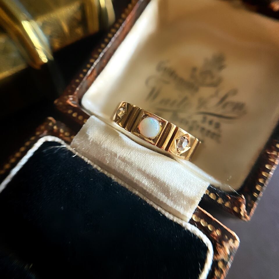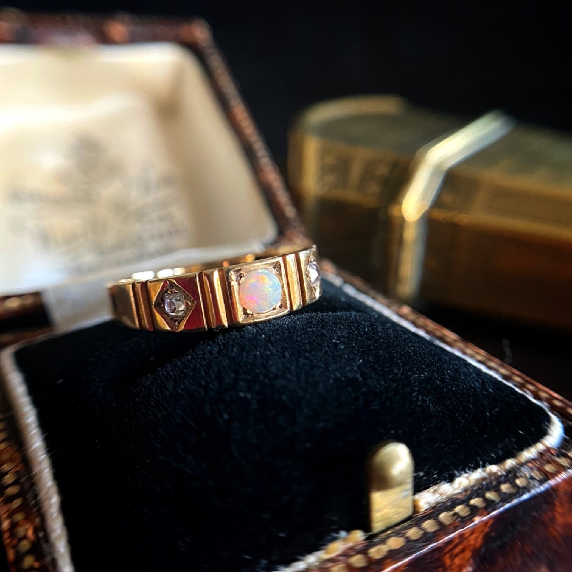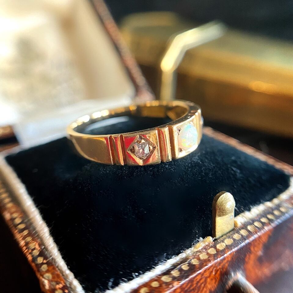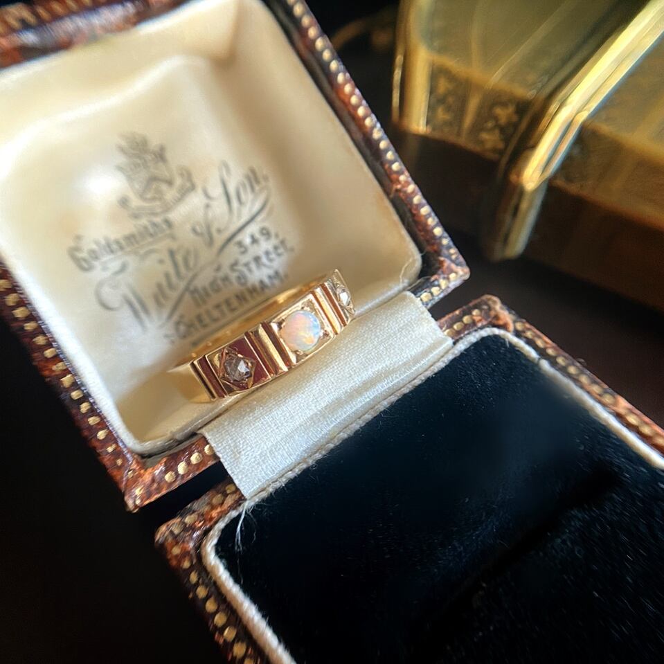 1868年から1883年にかけて英国特許庁が英国製であるを識別するために使用していたひし形のレジストリマークが綺麗に残っている、いにしえからの歴史の重みを感じて頂けるオパール&ダイヤモンドのヴィクトリアンリングのご紹介です。