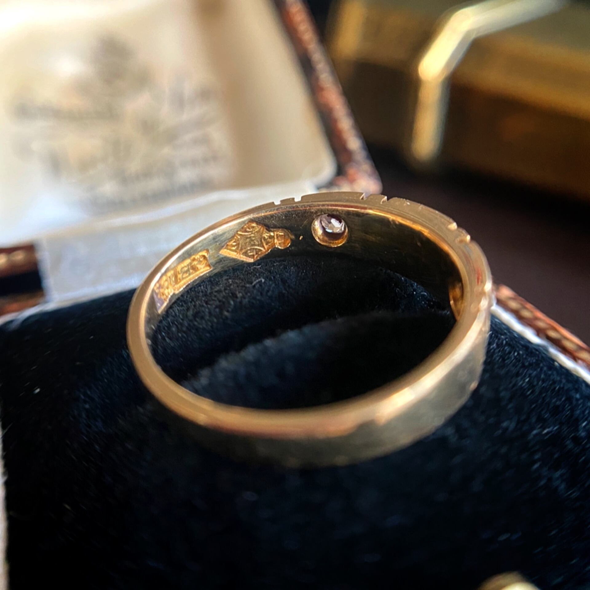 さて、こちらのリングは冒頭でも述べましたが、なかなか見かける事のない、英国のレジストリマークが綺麗に残っているという、とっても珍しいリングです。