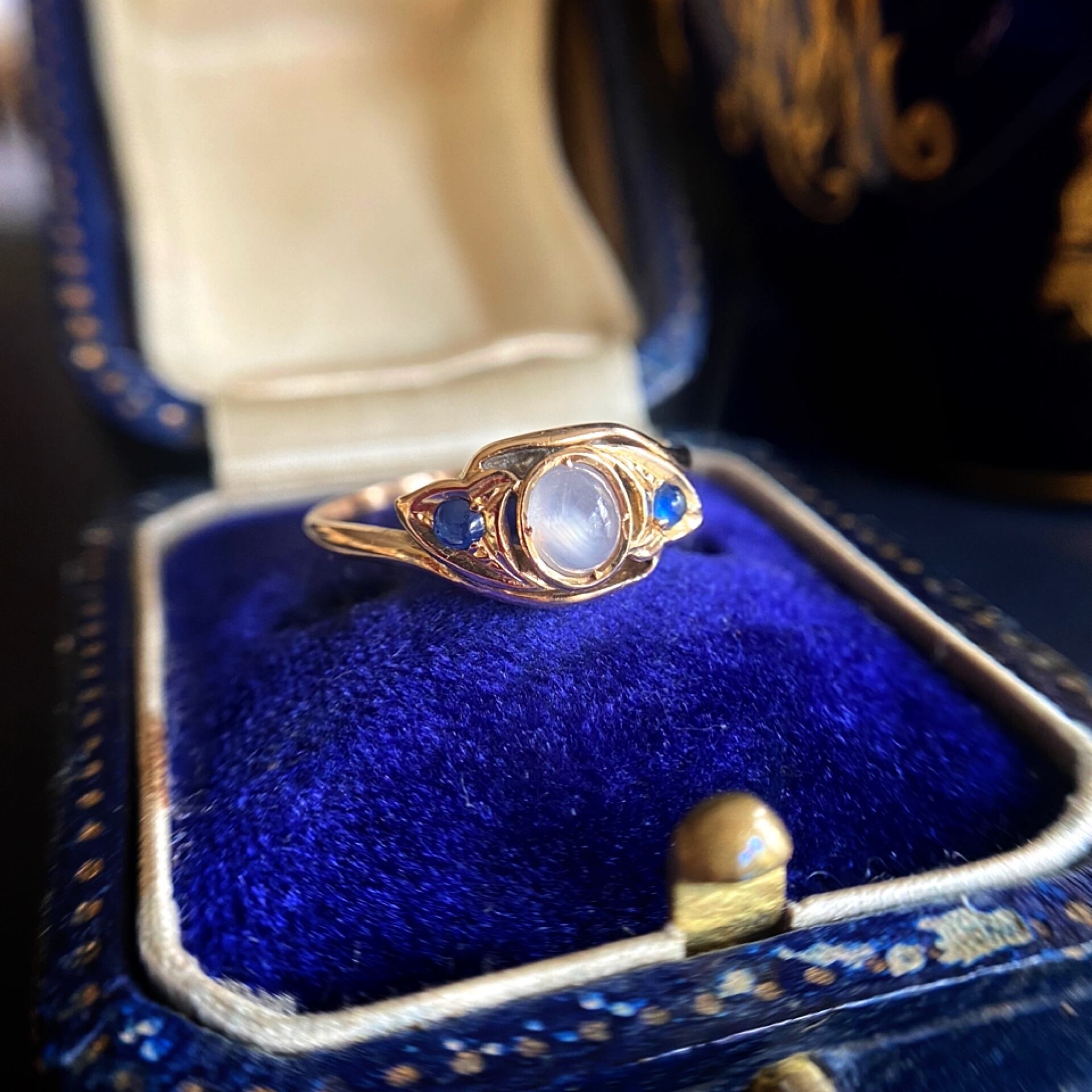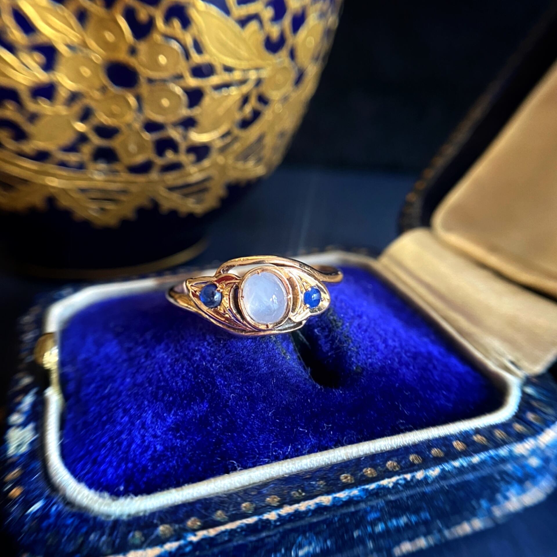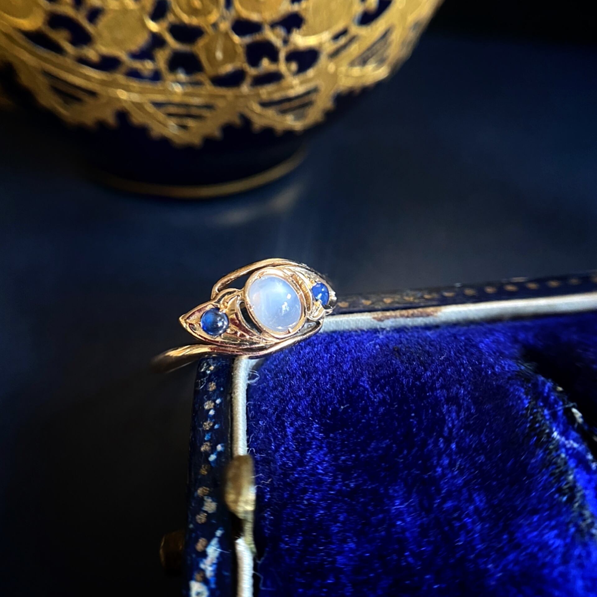 非加熱カボションスターサファイア&ブルーサファイアアールデコスネイクリング