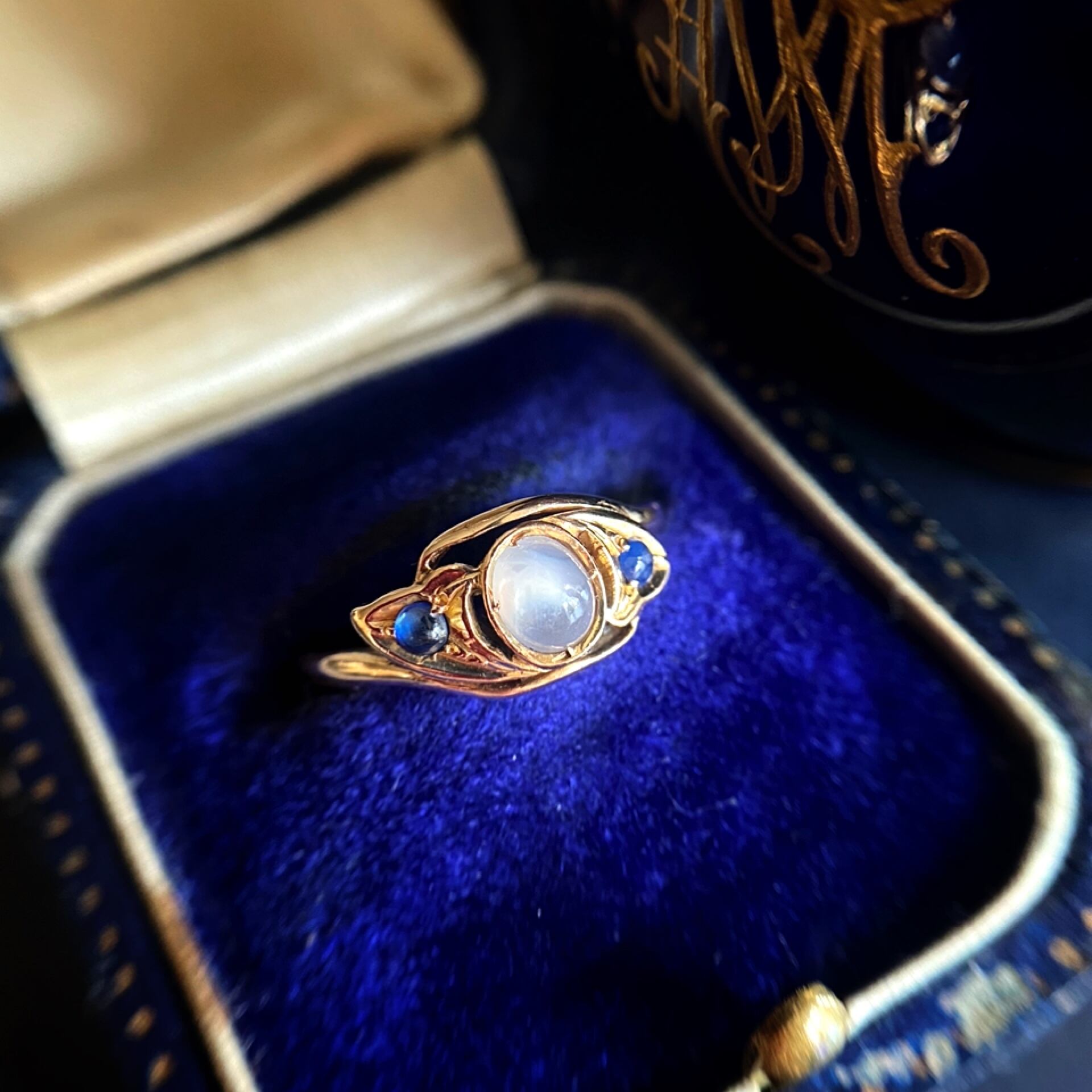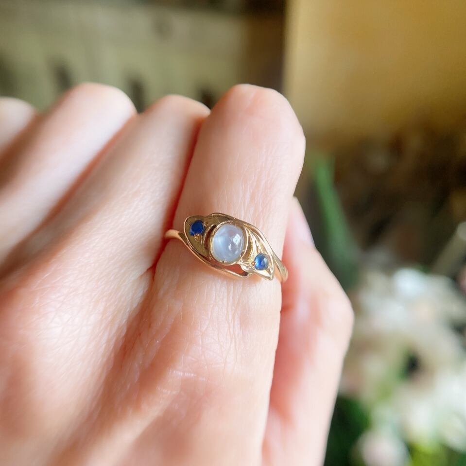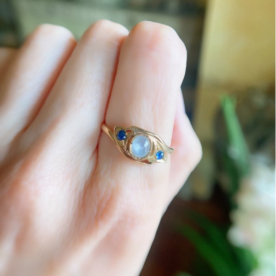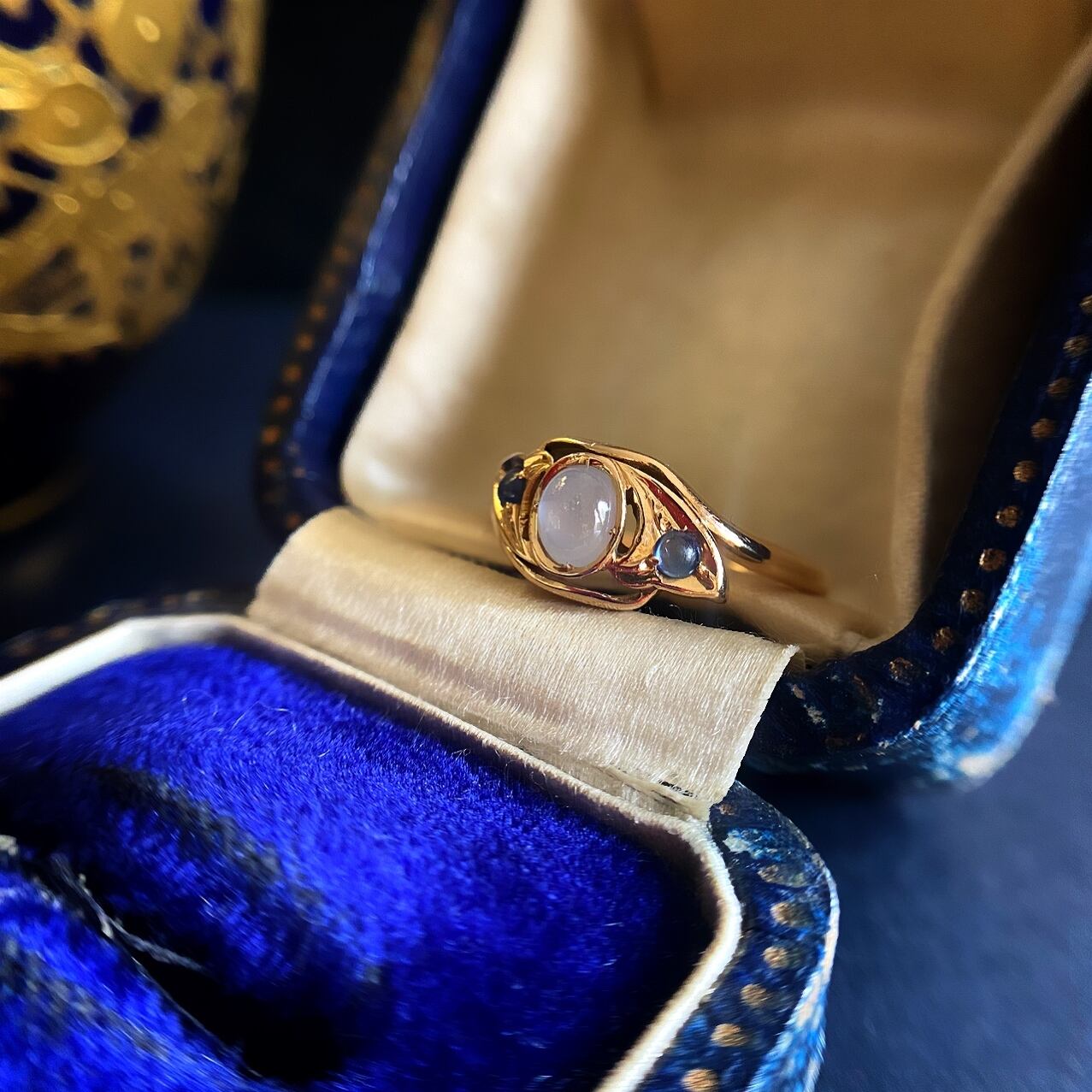 非加熱カボションスターサファイア&ブルーサファイアアールデコスネイクリング