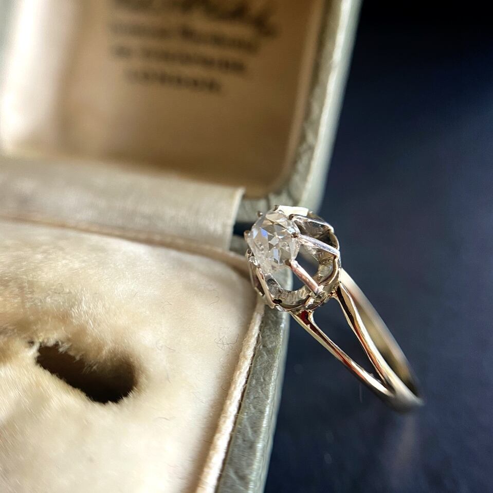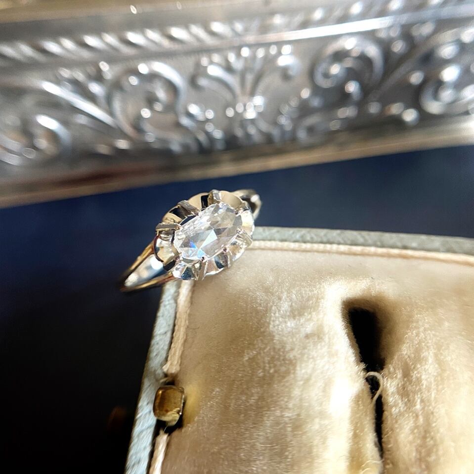 丸みを帯びたオーバルシェイプのダイヤモンドは今現在のマシンメイドのダイヤモンドと違い、ハンドカットならではのちょっとそら豆君のような完璧なオーバルになっていない所がなんとも可愛らしいと私のハートをくすぐってしまったのです。