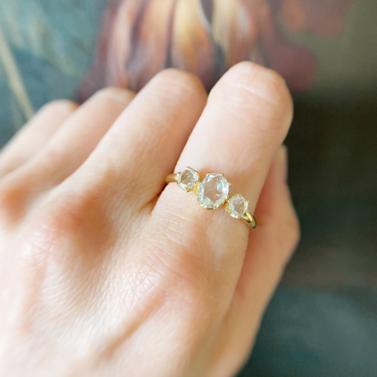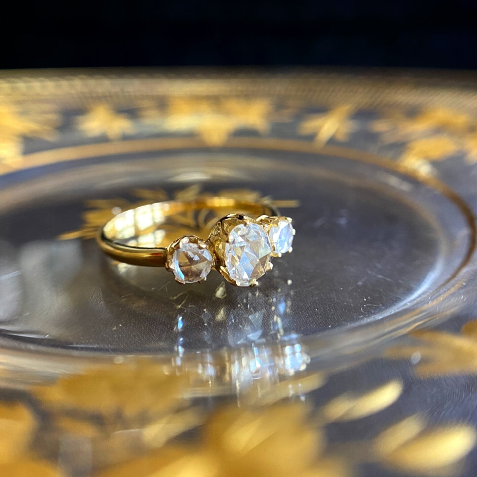 (商談中)フルローズカットダイヤモンドスリーストーンリング