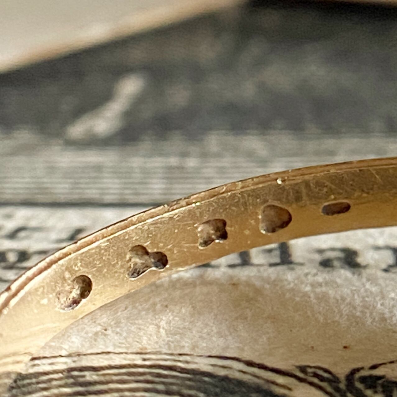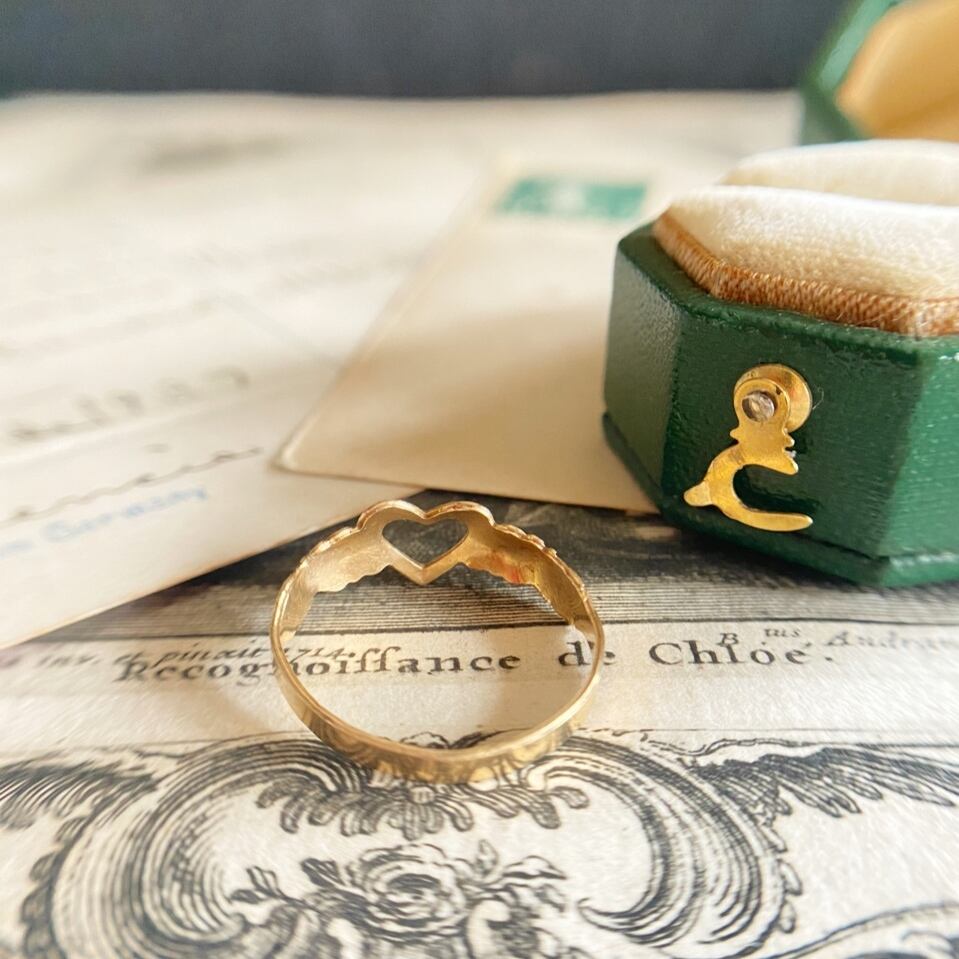 円やかになったゴールドのオープンハートの明るすぎない輝きはなんとも言えない味わいがありますね。