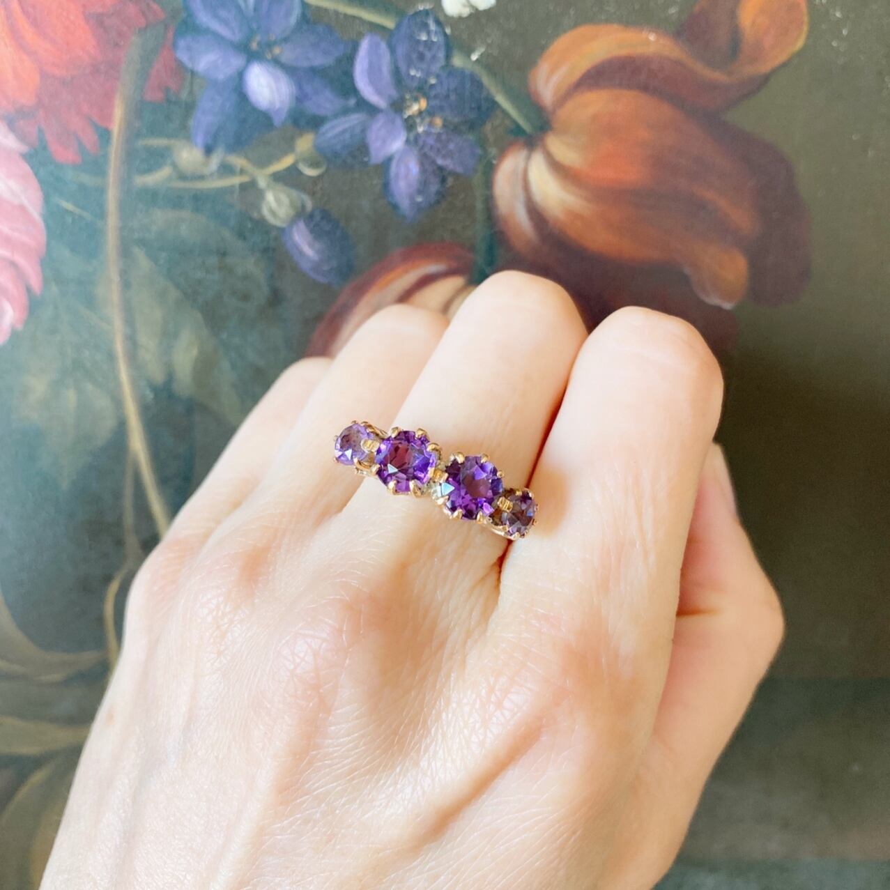 吸い込まれそうなほど深く鮮やかな紫色が美しいアメシストの一文字リング。