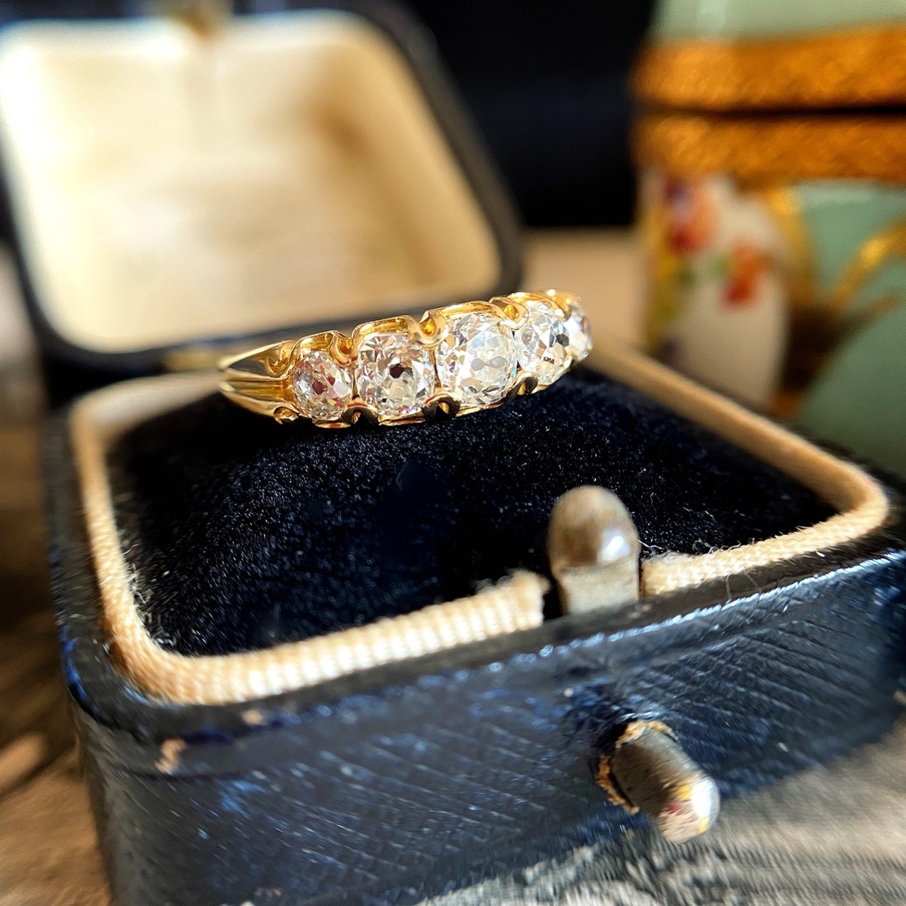 このように完全な状態のファイブストーンリングはシングルストーンに比べて極端に少なく、私も完璧な物を入手するのに時間がかかるのです。