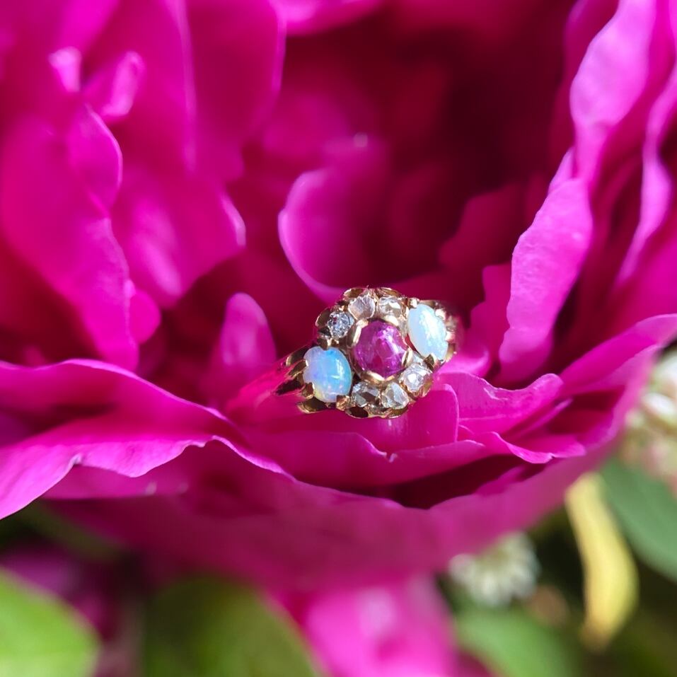 ルビー&オパール&ダイヤモンド ミッドヴィクトリアンリング