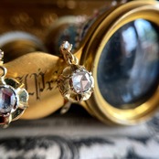 耳元でローズカットダイヤモンドの優しい煌きが溢れる素敵なヴィクトリアンピアスのご紹介です。