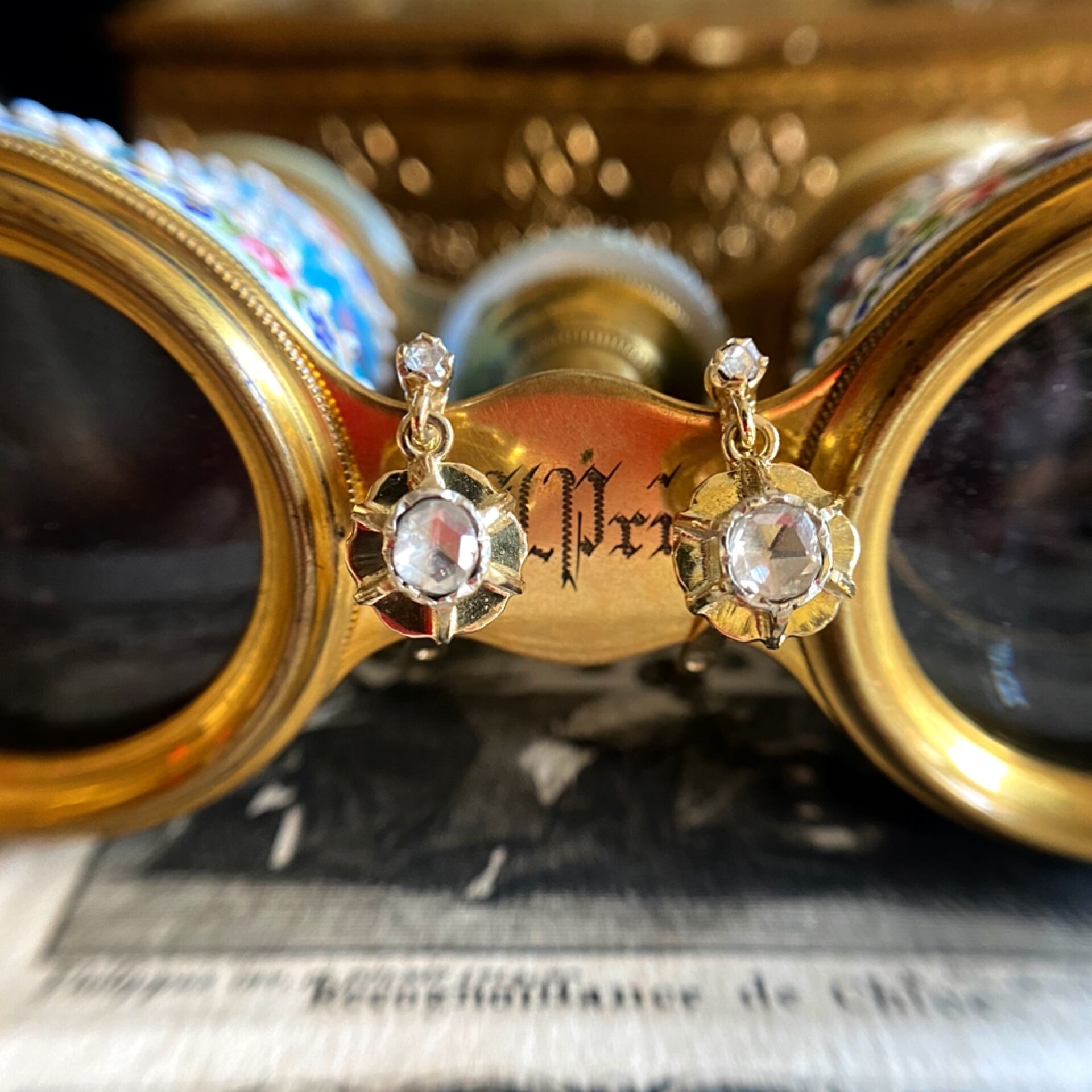 フルローズカットダイヤモンドバターカップヴィクトリアンピアス