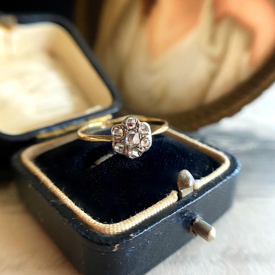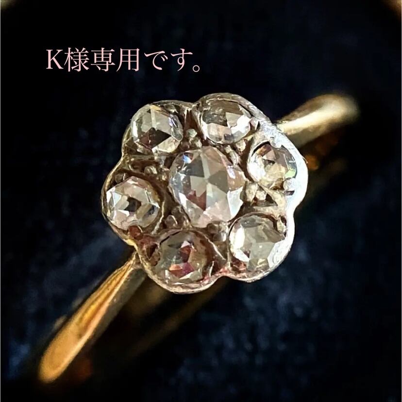K様専用です。ローズカットダイヤモンド可憐で小さなヴィクトリアンデイジーリング