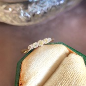 艶やかなゴールドの台座にプラチナの爪で5石のオールドカットダイヤモンドをグラデーションに並べたエドワーディアンリング。