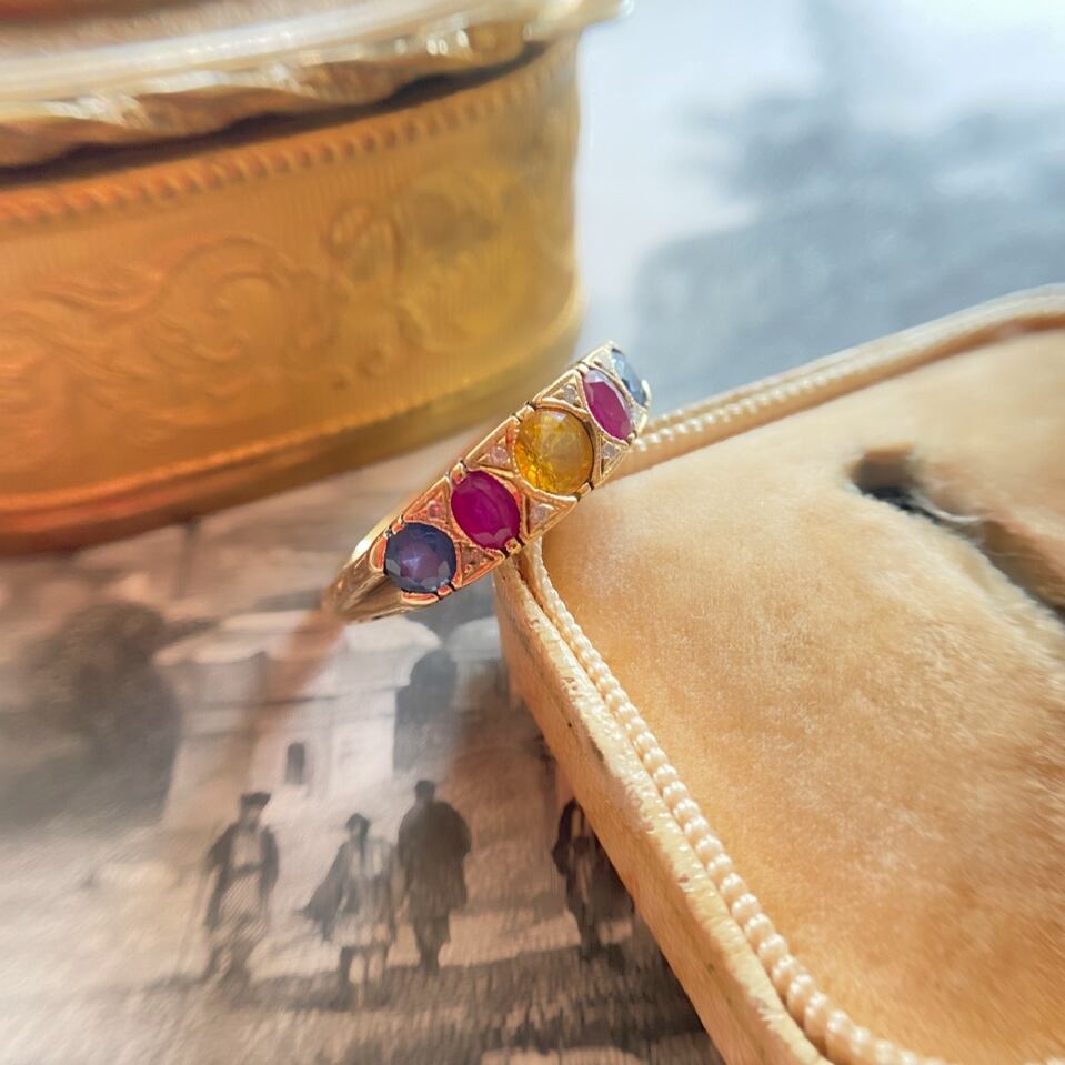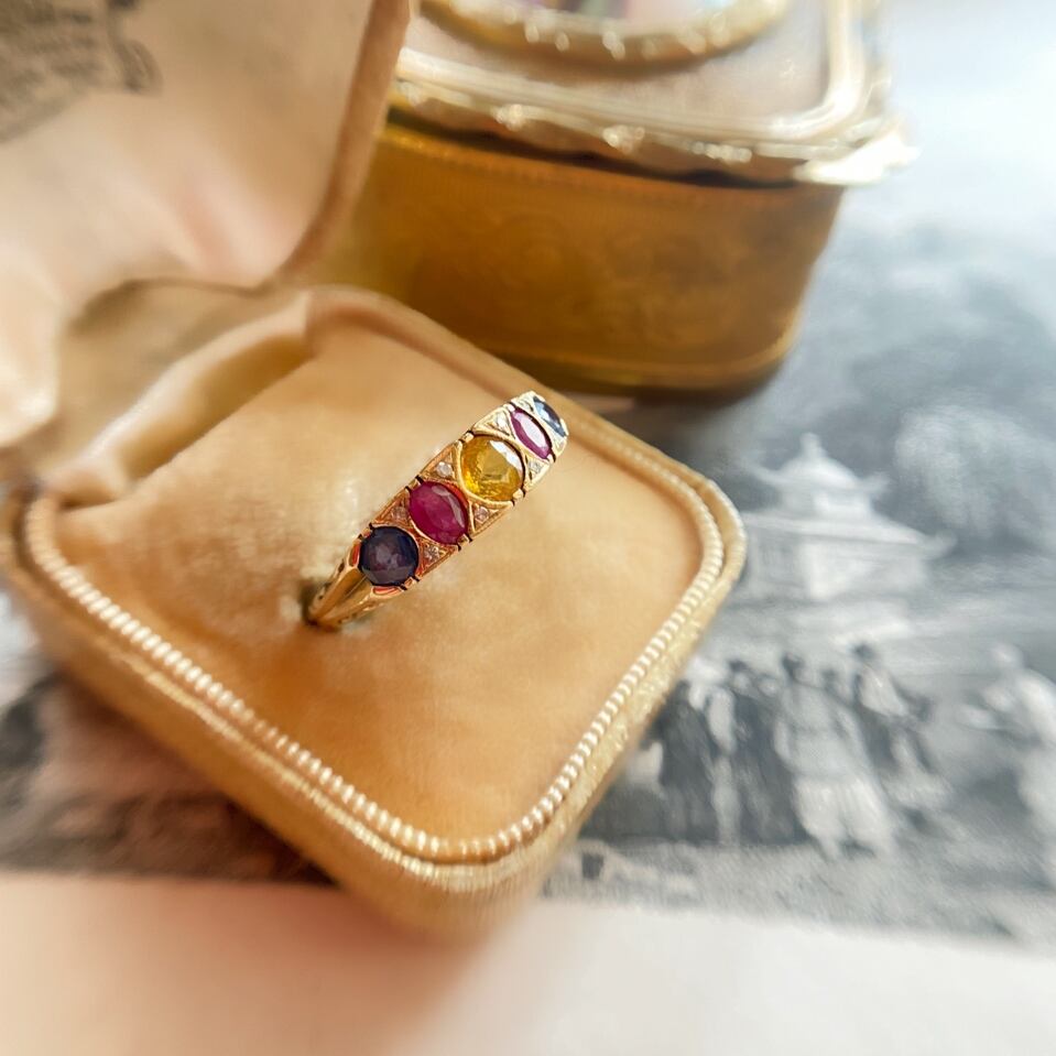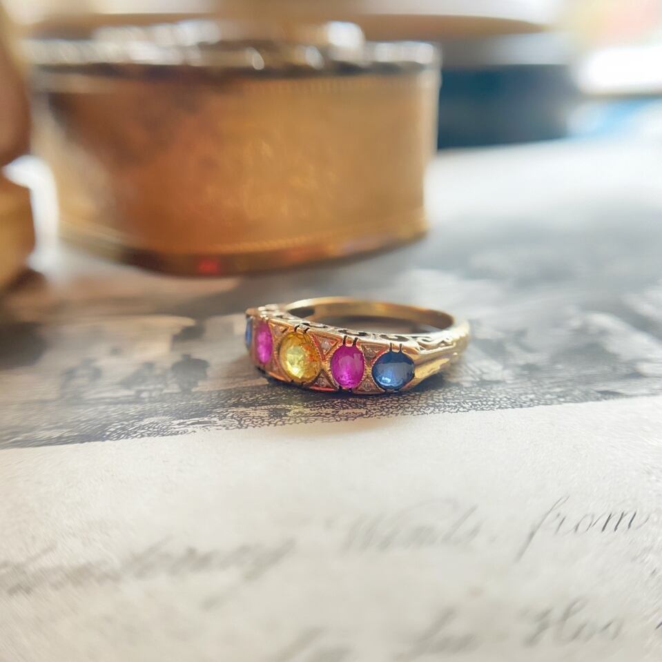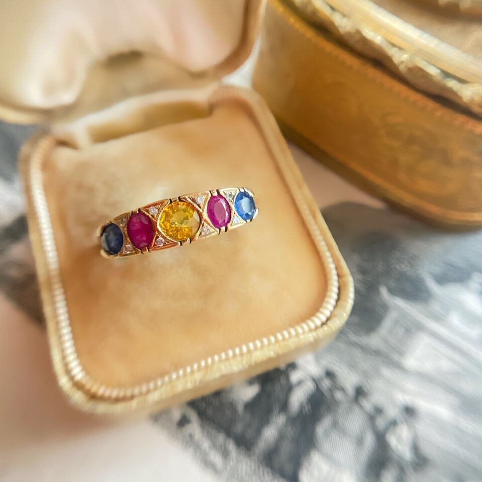 イエローサファイア&ルビー&ブルーサファイア&ダイヤモンドのコフレファイブストーンリング