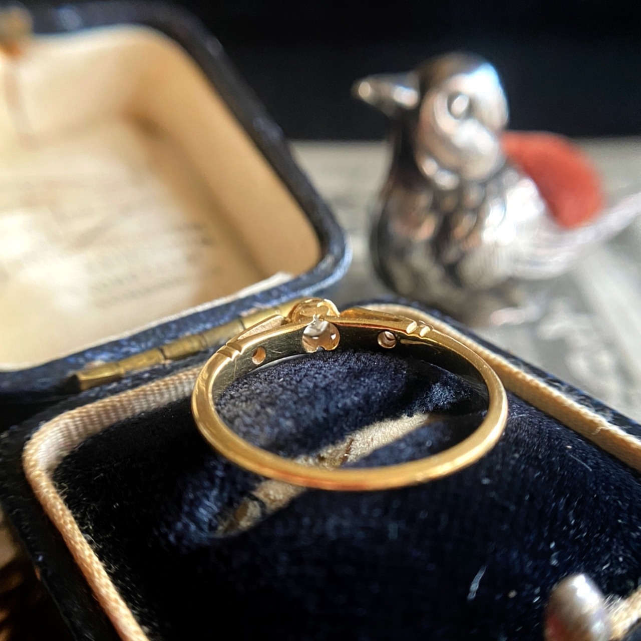 そしてショルダーの更に小さな極小ダイヤモンドもなんとオープンキュレットのクッションシェープのオールドマインカットダイヤモンドがセットされているではありませんか!!通常ならばシングルカットダイヤモンドやローズカットダイヤモンドをセットするでしょう。