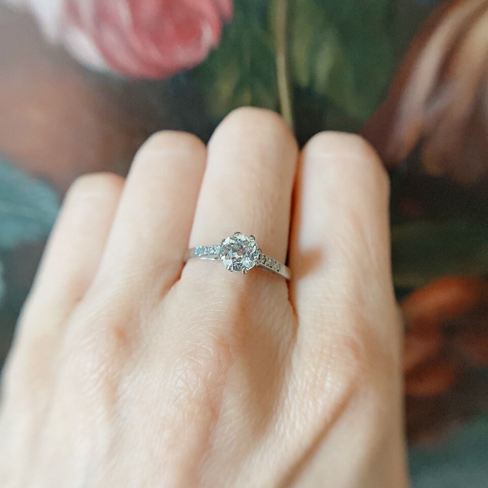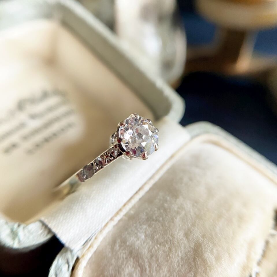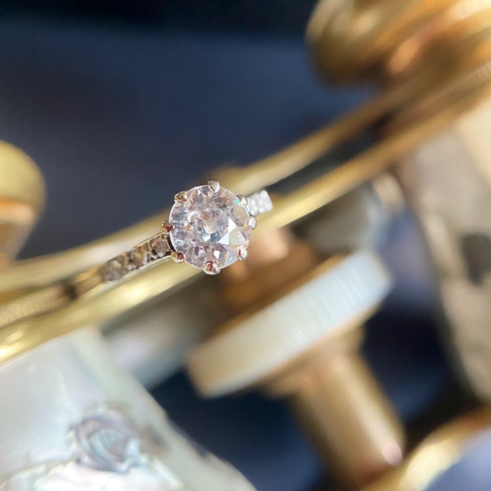 美しい輝きを放つ大粒のオールドヨーロピアンカットダイヤモンドのソリテールリング、アンティーク好きならば一つは持っていたいですよね。