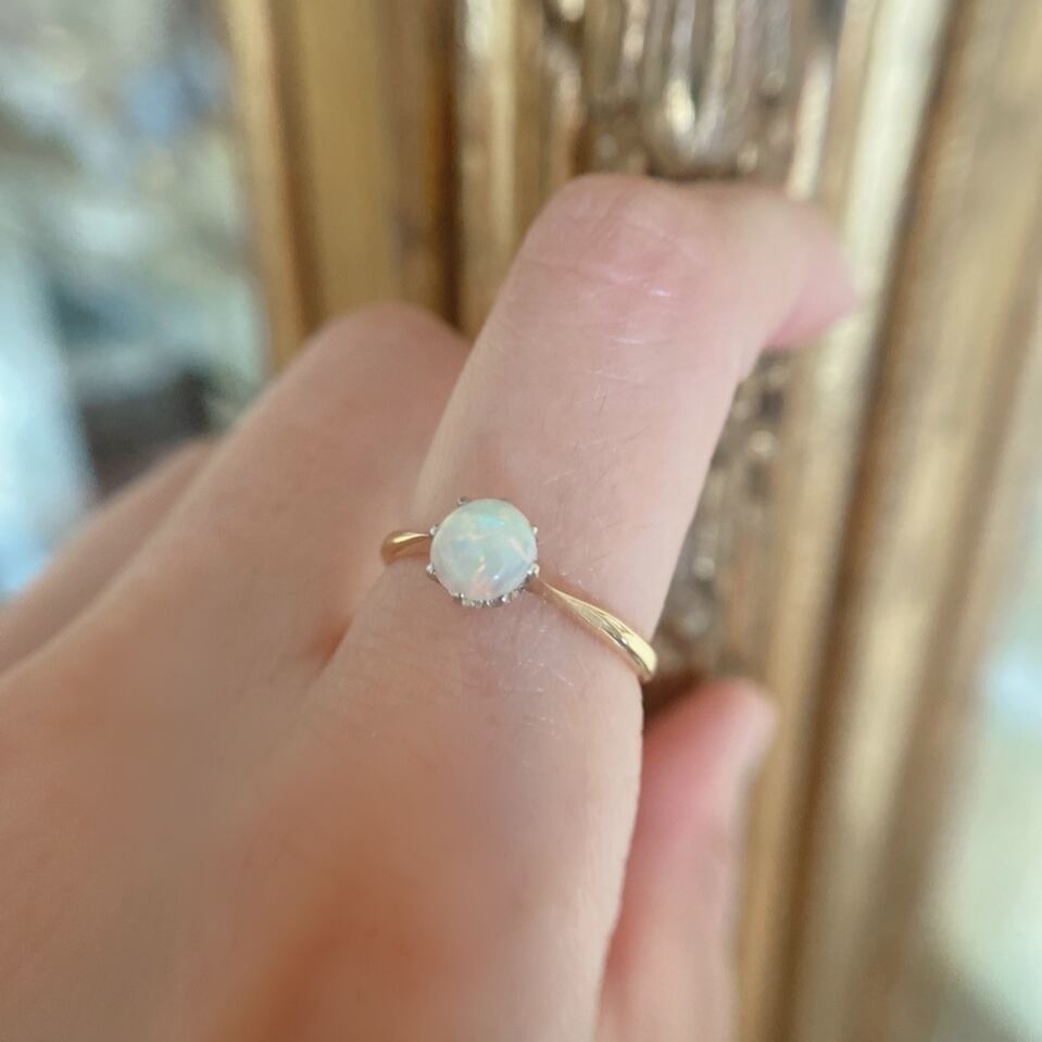 特にヴィクトリア時代に好まれた石でもあるオパールは性質上デリケートな石の為アンティークの物になると時の経過分だけ表面が幾分マットで輝きが薄れてしまっている事が多くありますがこちらの石はコンディションも良好で、キズやカケはなく、オレンジやグリーン、ブルーのクリーミーな浮遊色を見せてくれます。