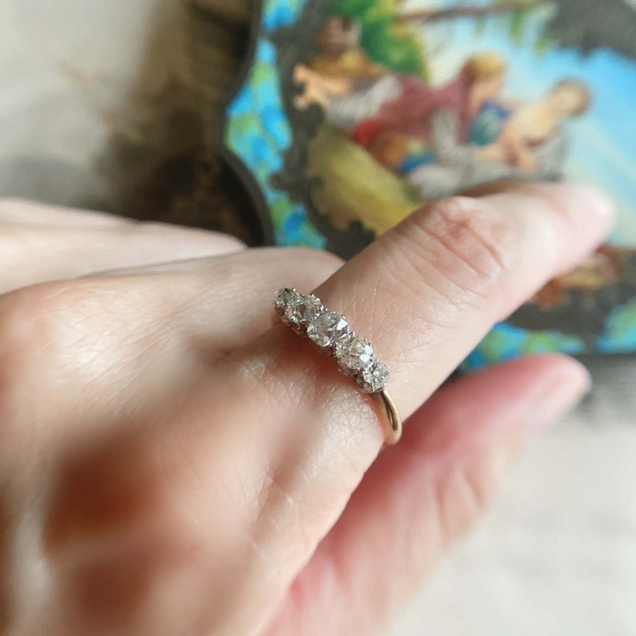 オールドマインカットダイヤモンドファイブストーンエドワーディアンリング