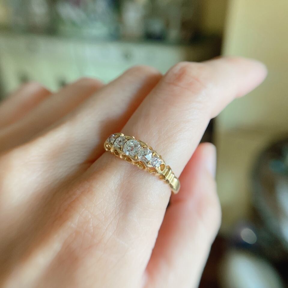 オールドヨーロピアンカットダイヤモンドファイブストーンリング