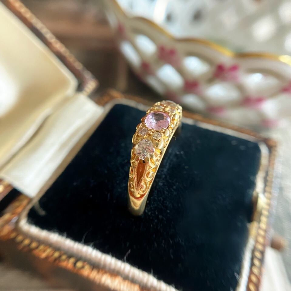 ピンクサファイア&オールドヨーロピアンカットダイヤモンドヴィクトリアンリング