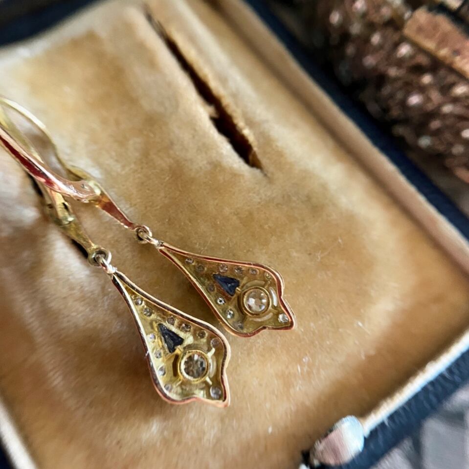 S様専用です。エドワーディアン(ベルエポック)ダイヤモンド&サファイアドロップピアス