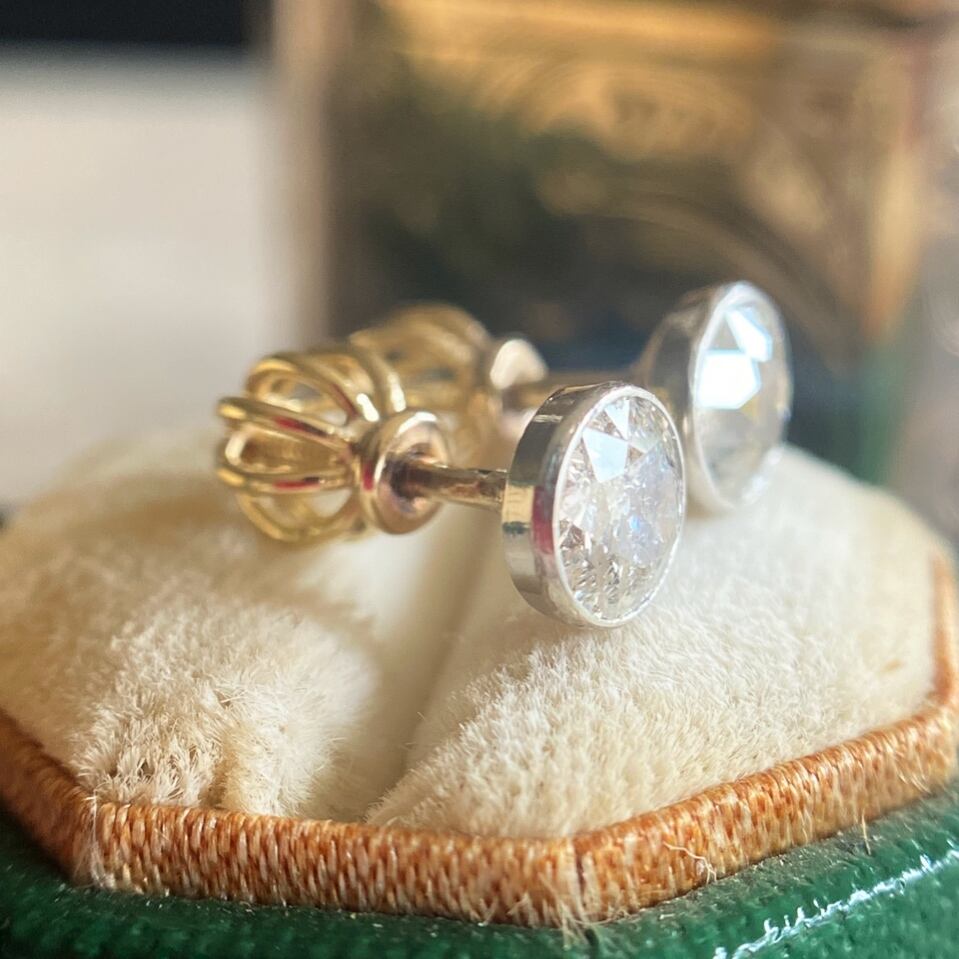 オールドヨーロピアンカットダイヤモンドは約5.5mmあり、真円の整ったラウンドの輪郭はオールドマインカットダイヤモンドにはない端正な美しさがあり惚れ惚れとしてしまいます。