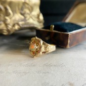18kゴールドのフェイスに溶け込むようにしてセットされたオパール、地金との色味の一体感がとっても美しく、角度を変えるたびにカボションカットのドーム型の石の中からメラメラとまるで炎のような幻想的な世界をみせてくれるオパールは約5mm程と小ぶりですが、存在感があり、まるで夕焼け空を独り占めしてるような、ぼーって眺めていると心がほっとするのです。(感じ方は人それぞれですので、あくまでも私の感想です。)