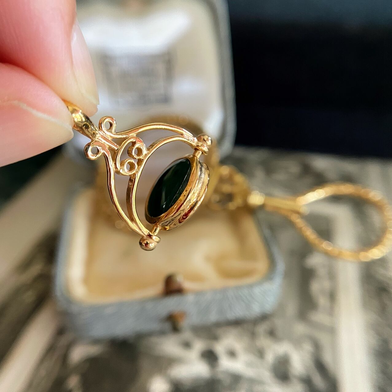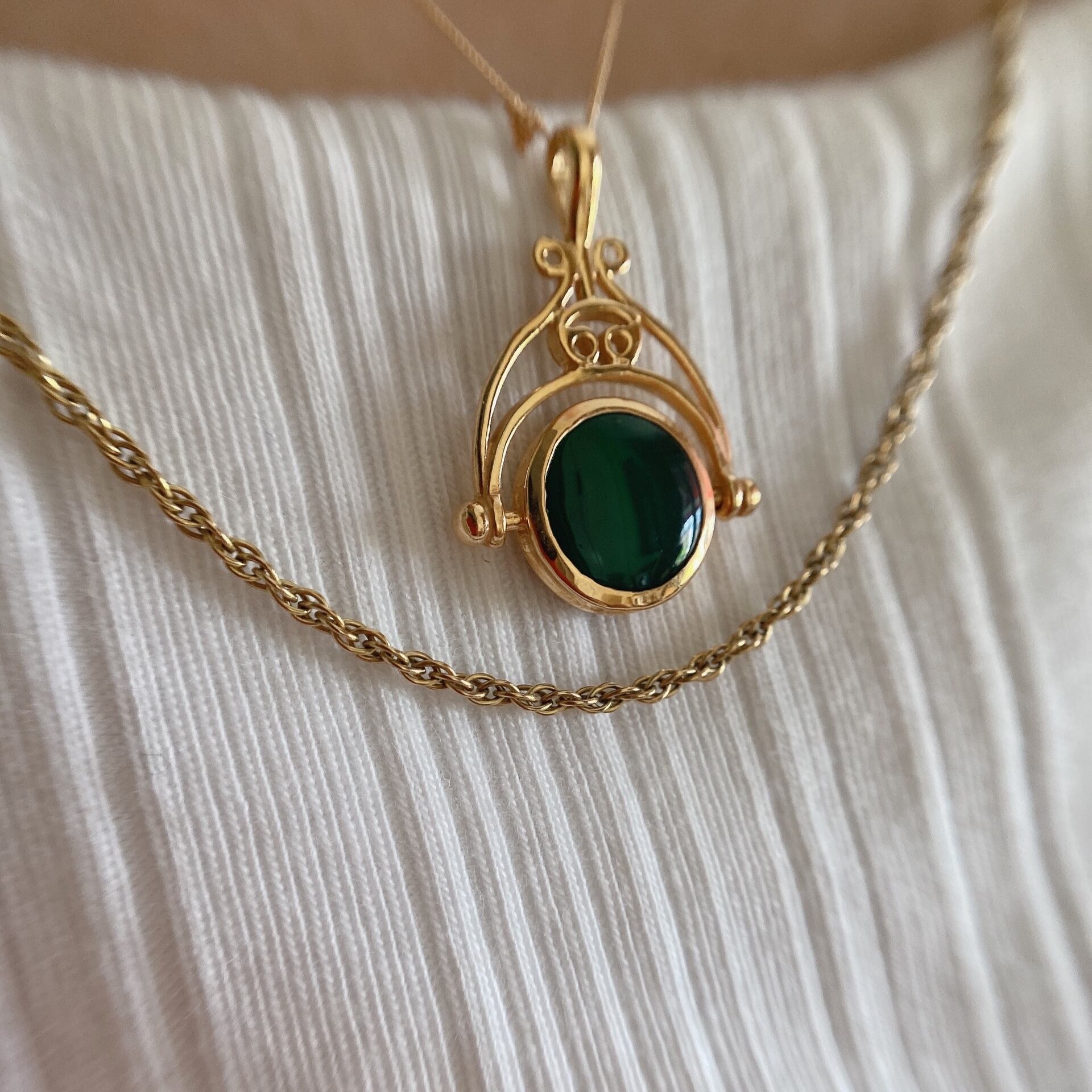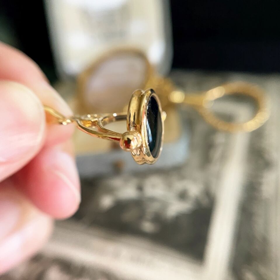 ジョージアンなどのシールは首から下げた時に石面が下を向いてしまい、折角の石がみえないのですが、こちらは平面、しかも回転式、そのためお洋服によってオニキスにしてみたり、メノウにしてみたり、アレンジができるのも嬉しいですね。一つで二役なんて、得した気分!笑