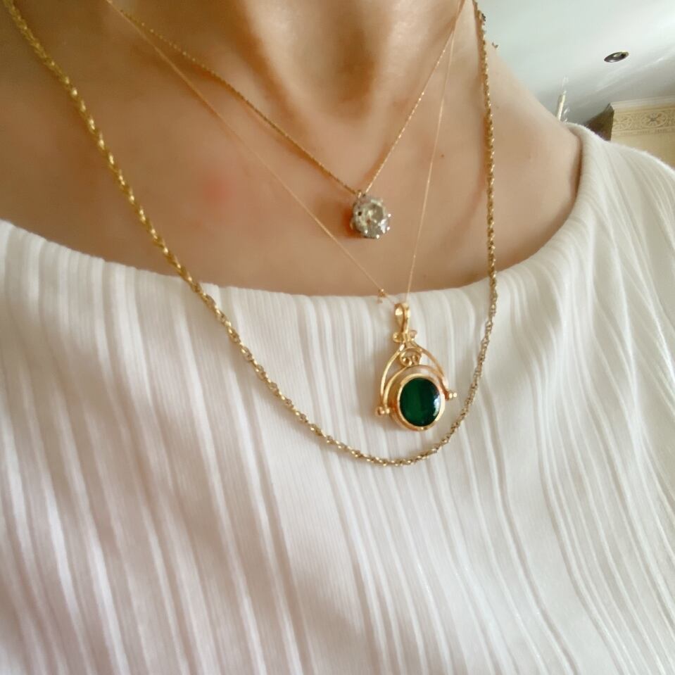 ジョージアンのようにデコラティブな物ではなく、1930年代らしいシンプルなデザイン故、他のペンダントとの重ね付けなども気軽にでき、服装も選ばず、気負わずにコーデに取り入れて頂ける素敵なひと品です。