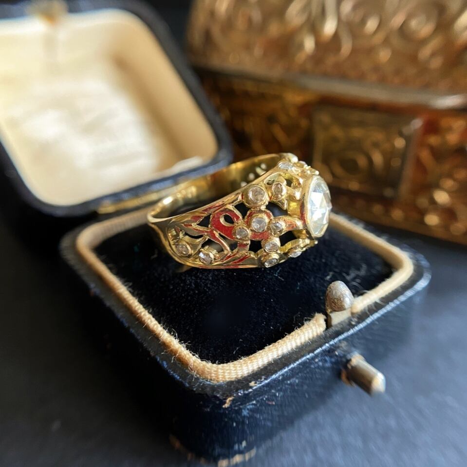 (商談中となりました。)フルローズカットダイヤモンド ターンオブザセンチュリーアールヌーヴォーリング