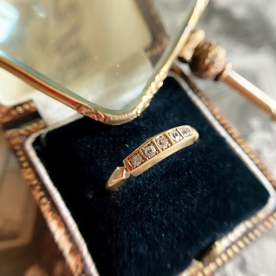 オールドカットダイヤモンドを5石一列に並べたヴィクトリアンファイブストーンリング。