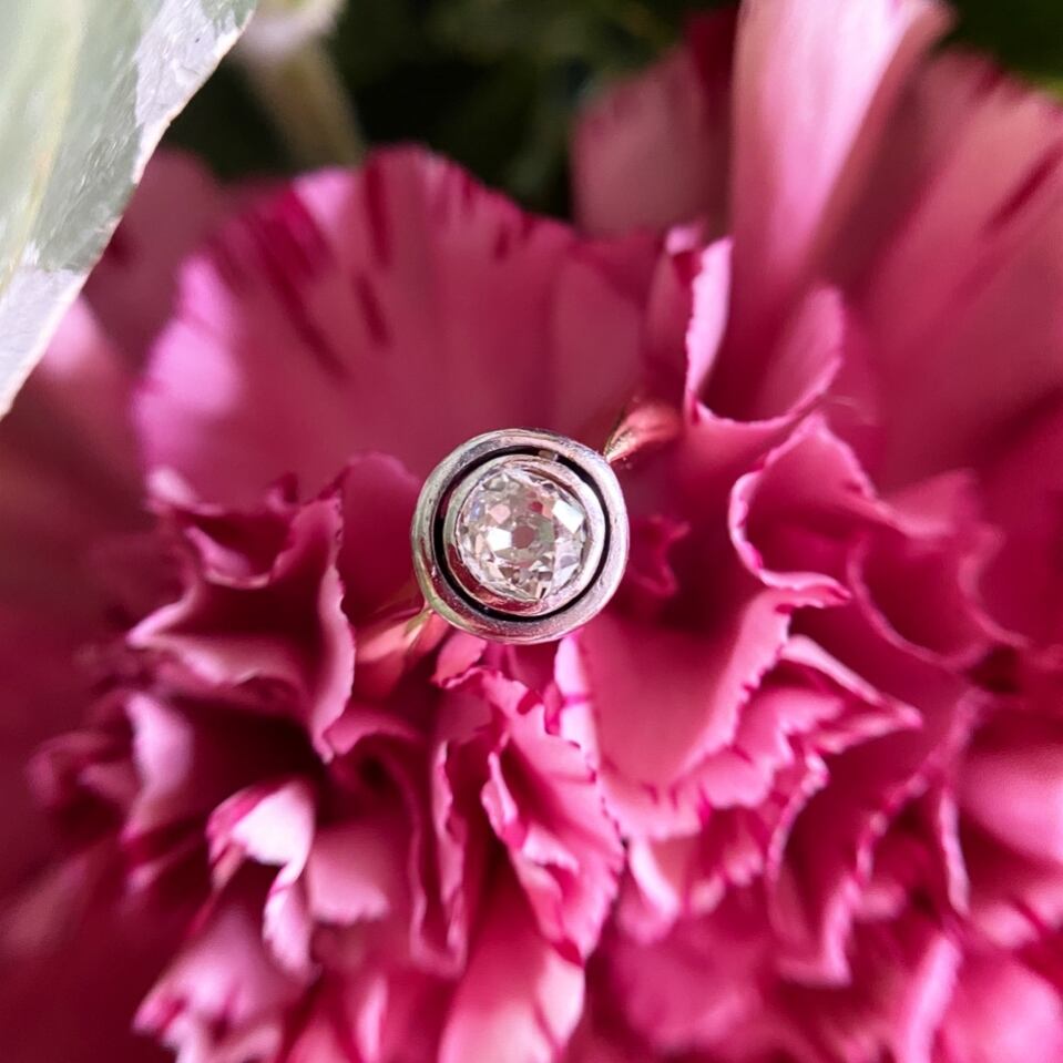まん丸おめめのオールドマインカットダイヤモンドソリテールリング