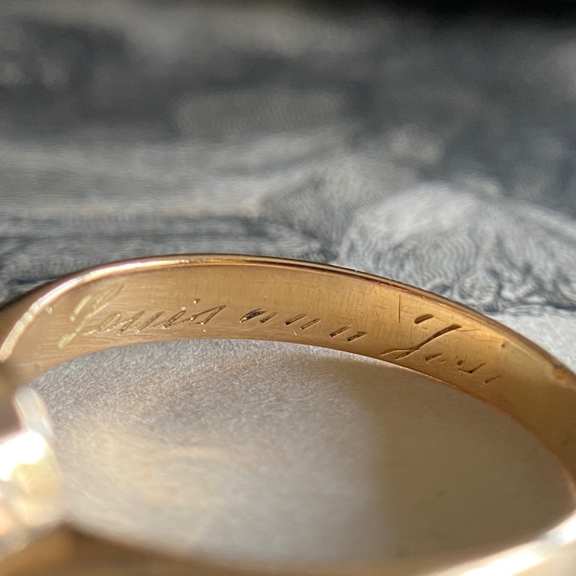 カケもなく、肉眼でわかるような目立つキズもございません。こんなにしっかりとしたオープンキュレットの物を見つけるのは今ではそう簡単ではないので、その点でもオススメのリングです。