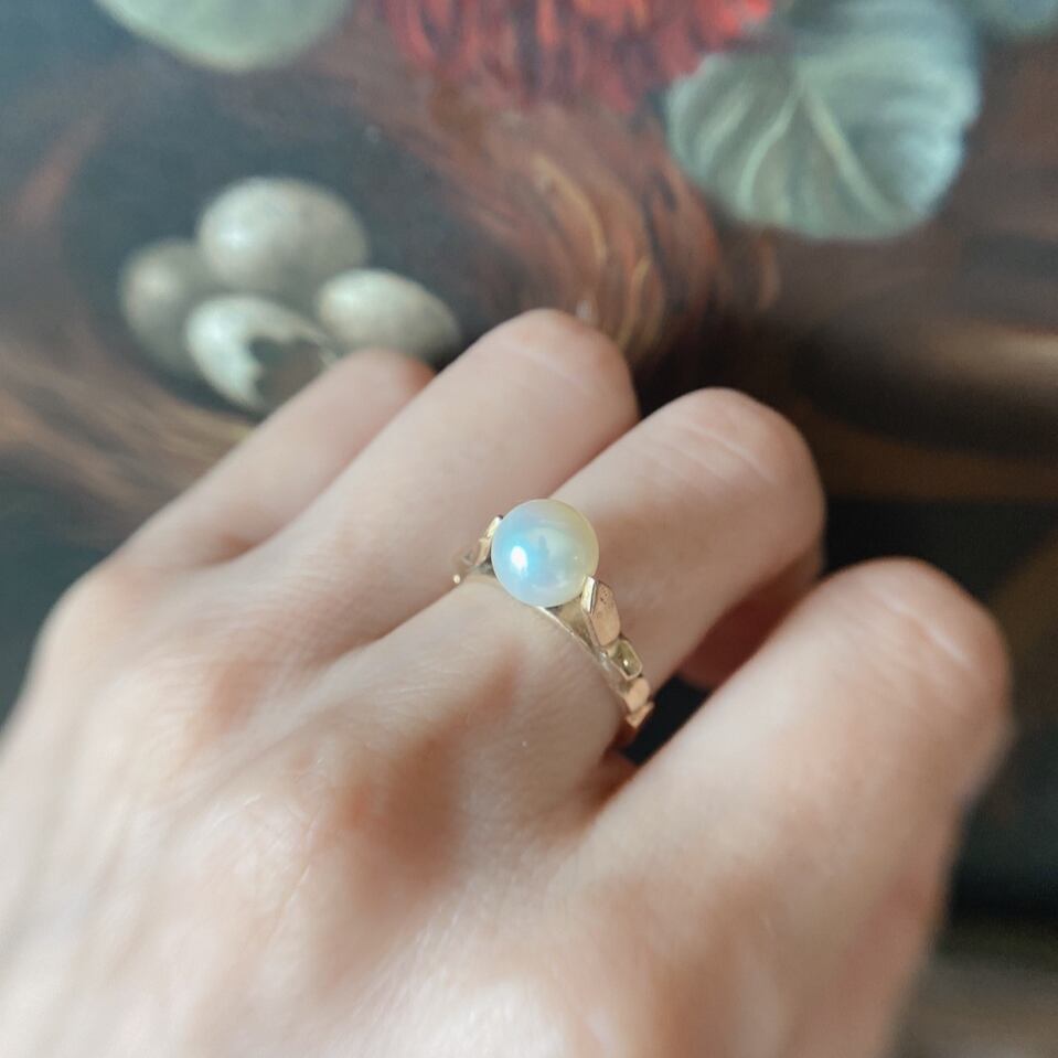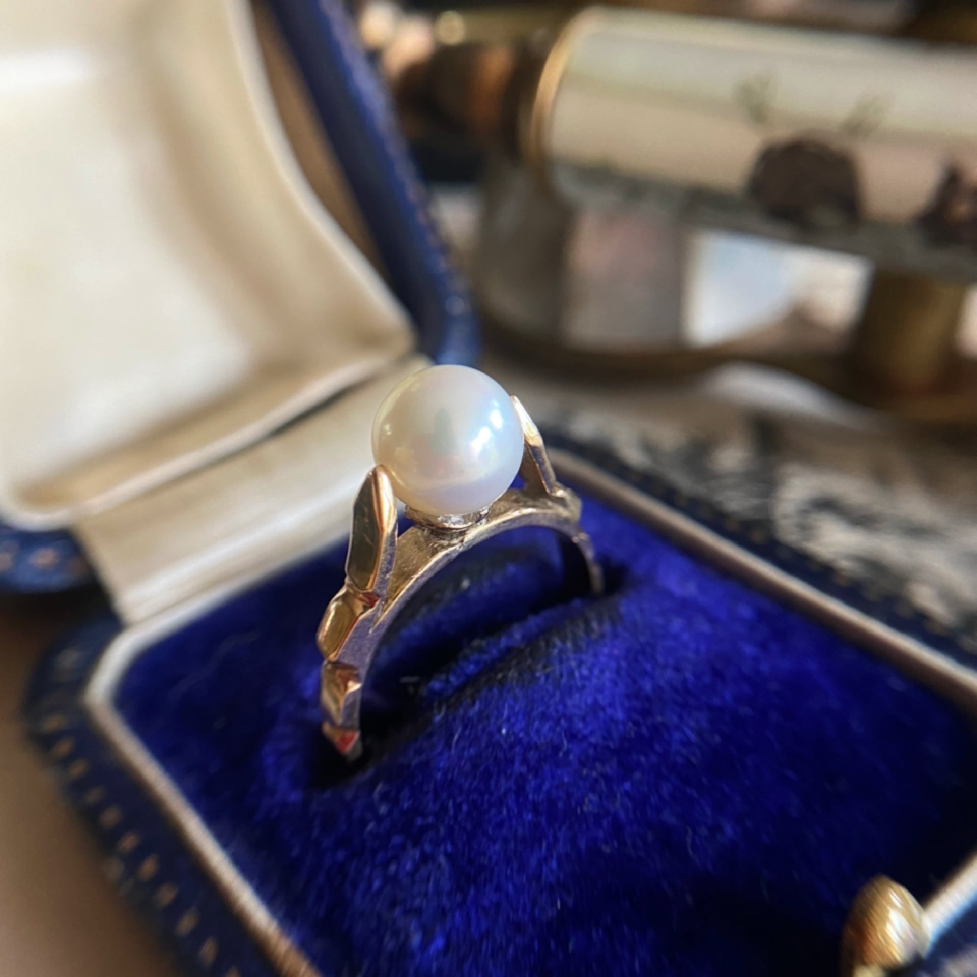 一粒パールのポストアールデコ〜モダンへの移行期リング