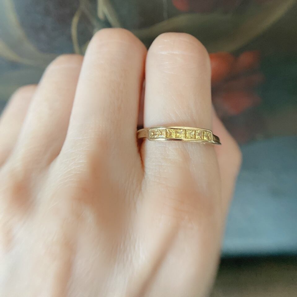 9月のジュエル イエローサファイア ハーフエタニティーブリティッシュヴィンテージリング