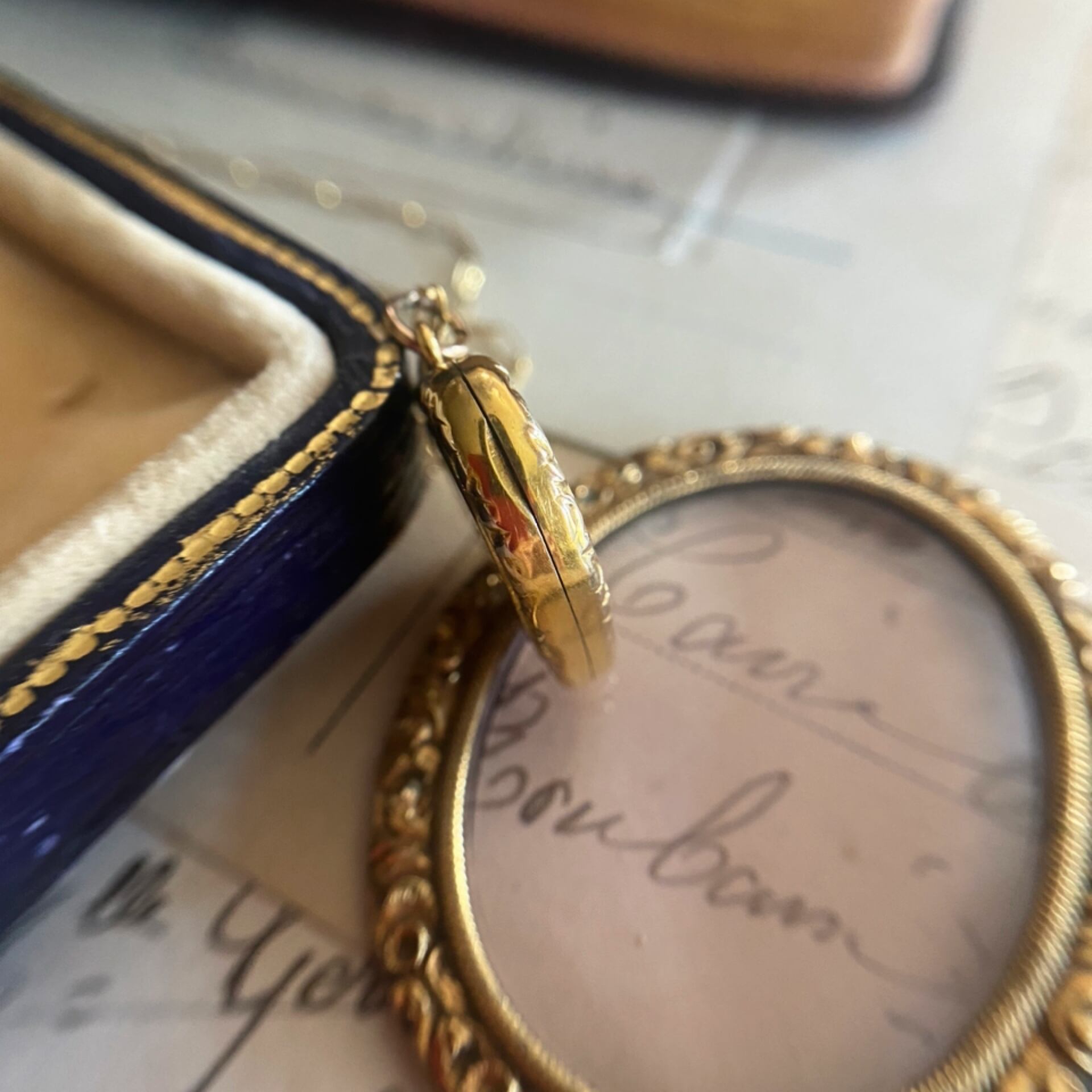 想いを募らせる人や家族の肖像や想い出の品などを常に携帯できるようにロケットが流行しました。 今のように気軽に人に会えない時代、遠くに住む誰かを想い身につけていたのかもしれないですね。