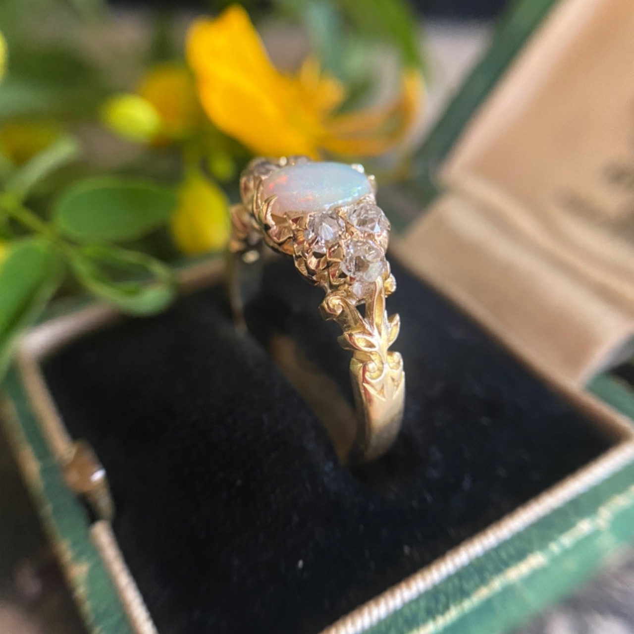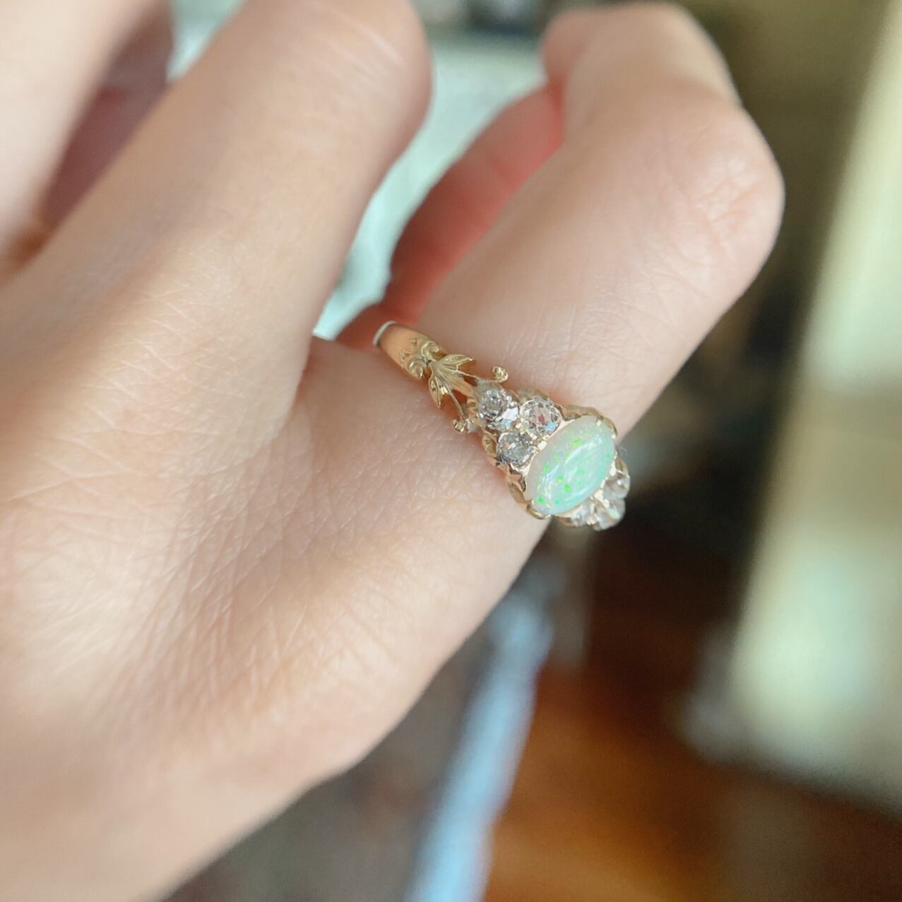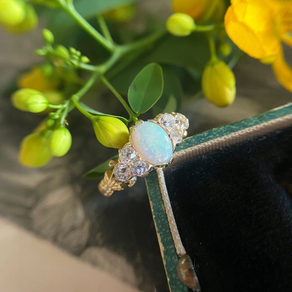 オパール&オールドマインカットダイヤモンドシャムロックヴィクトリアンリング