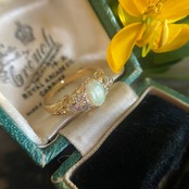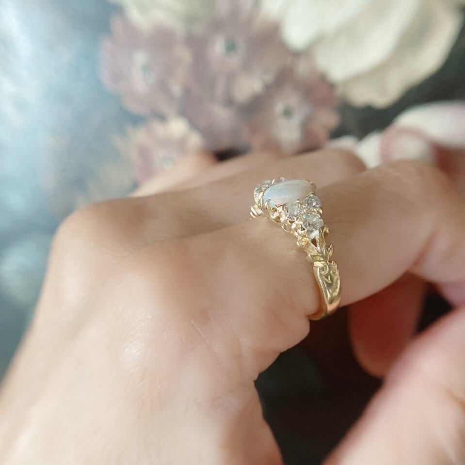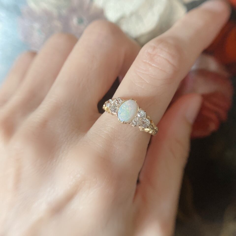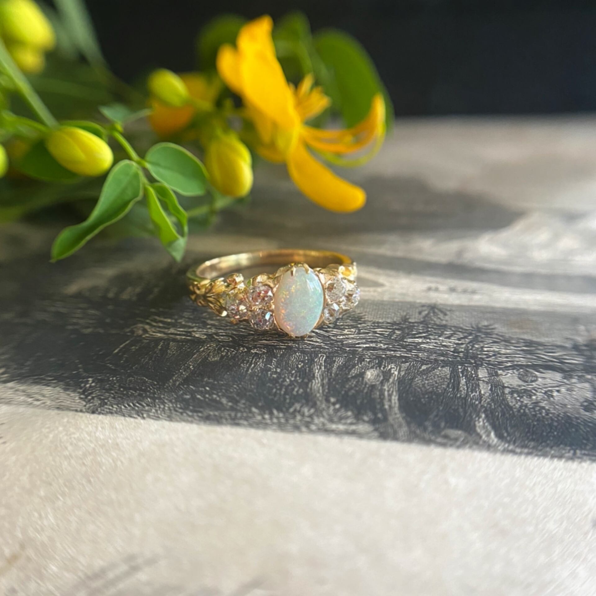 オパール&オールドマインカットダイヤモンドシャムロックヴィクトリアンリング