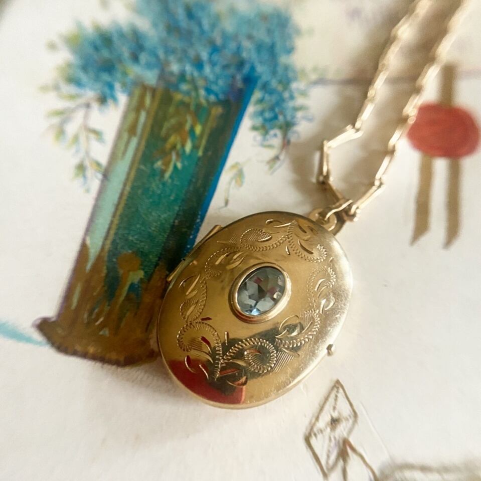 幼少の頃に憧れていたような、アクアマリンのロケットペンダントのご紹介です。