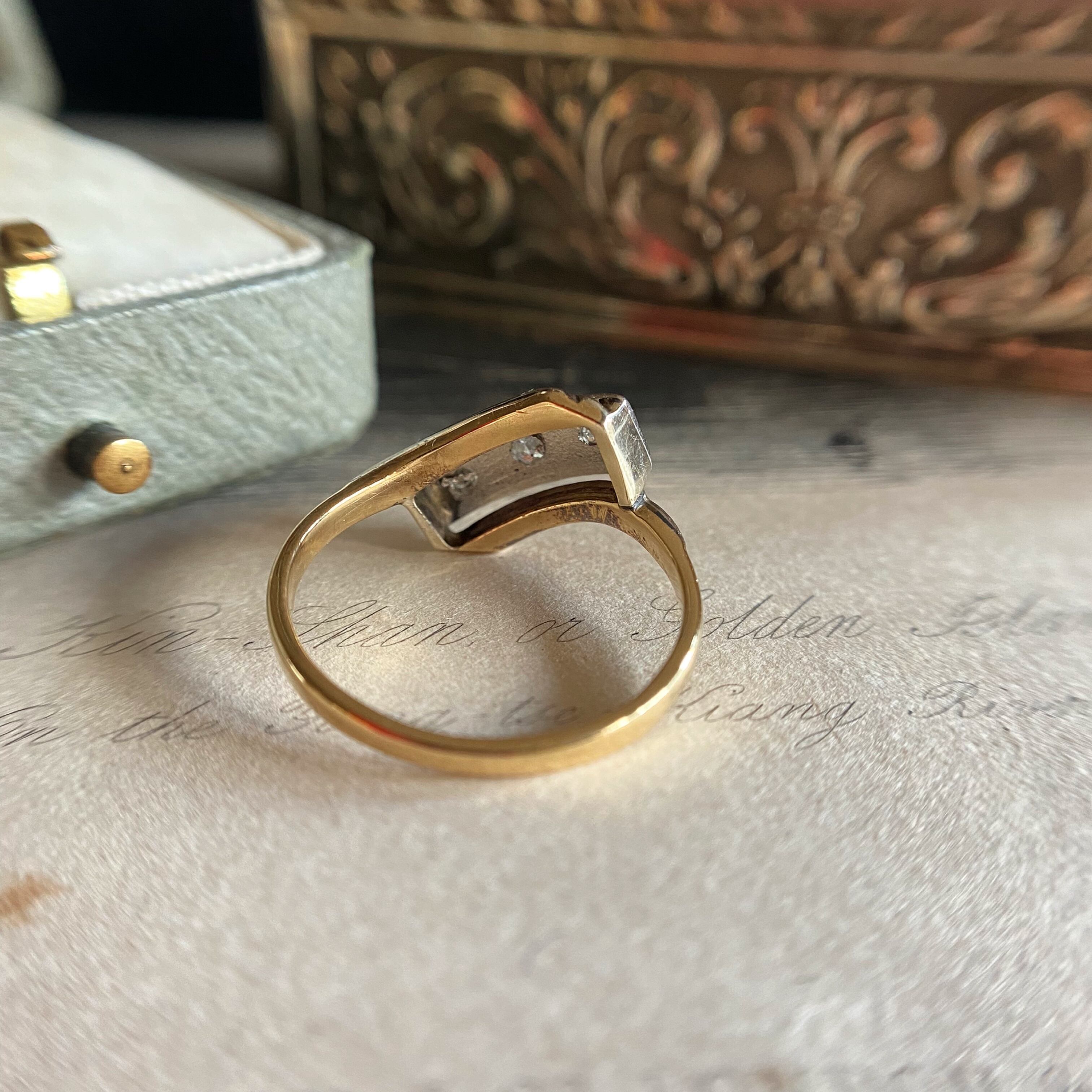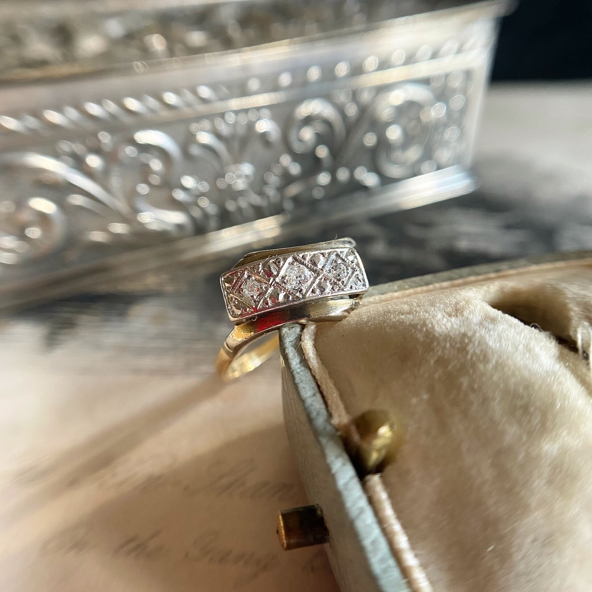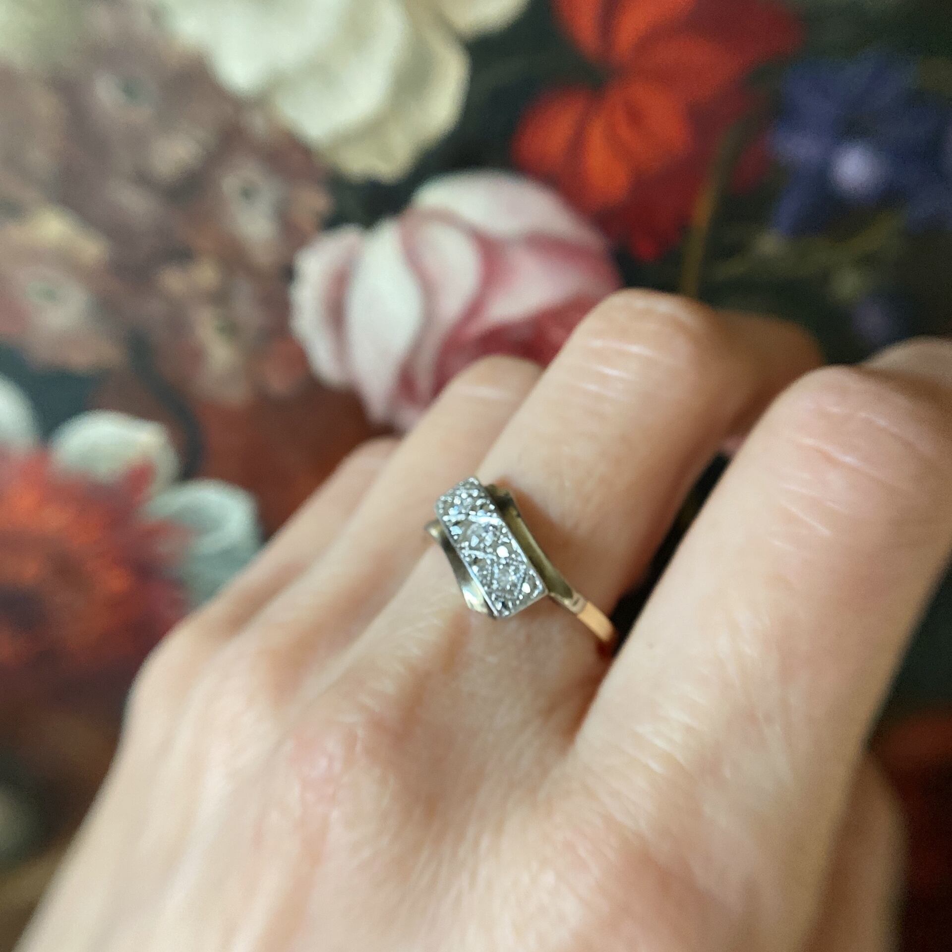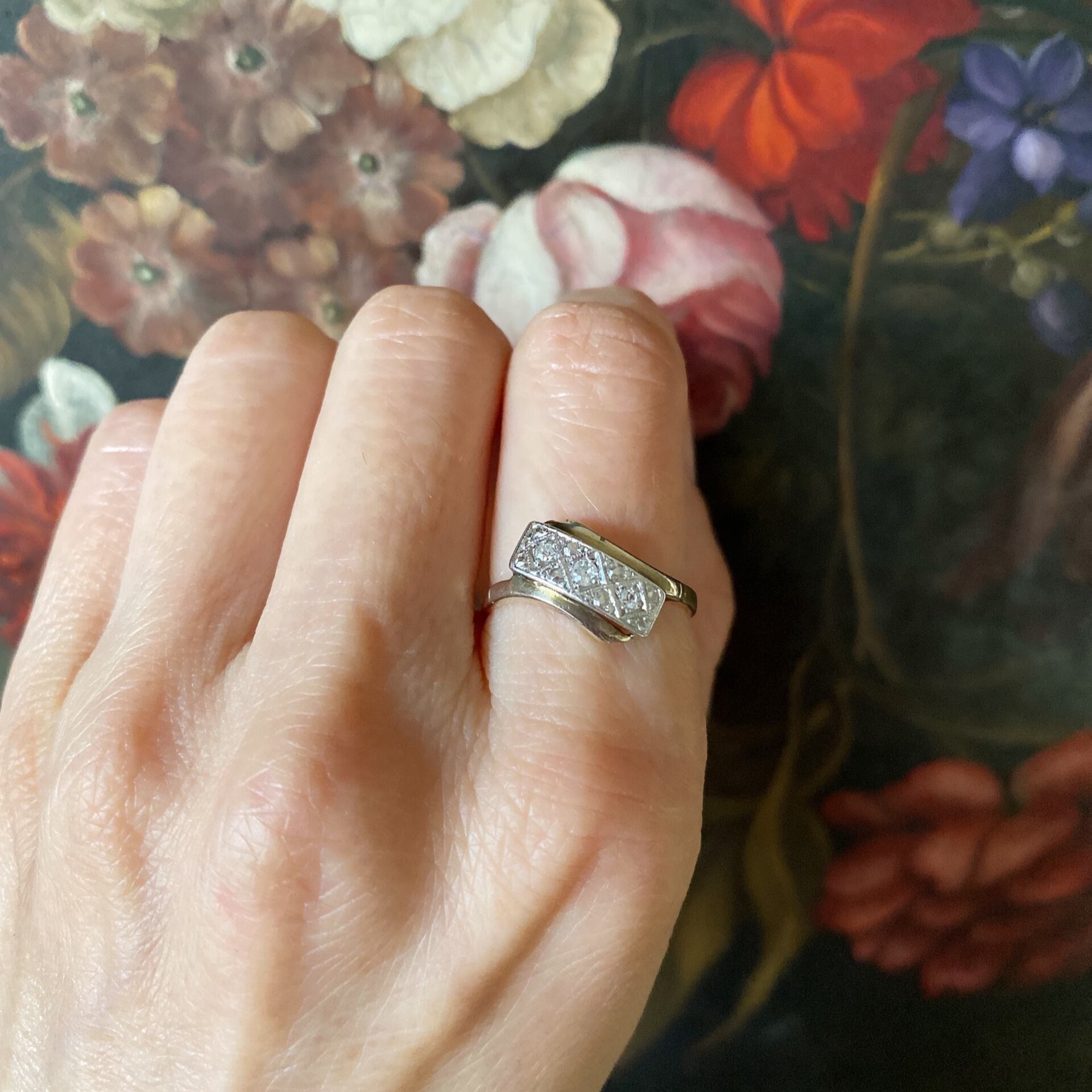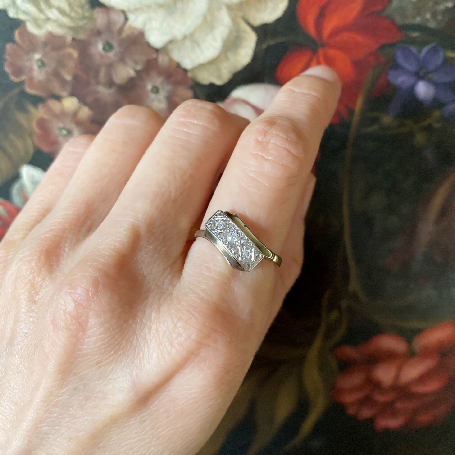 オールドカットダイヤモンドスリーストーンアールデコリング