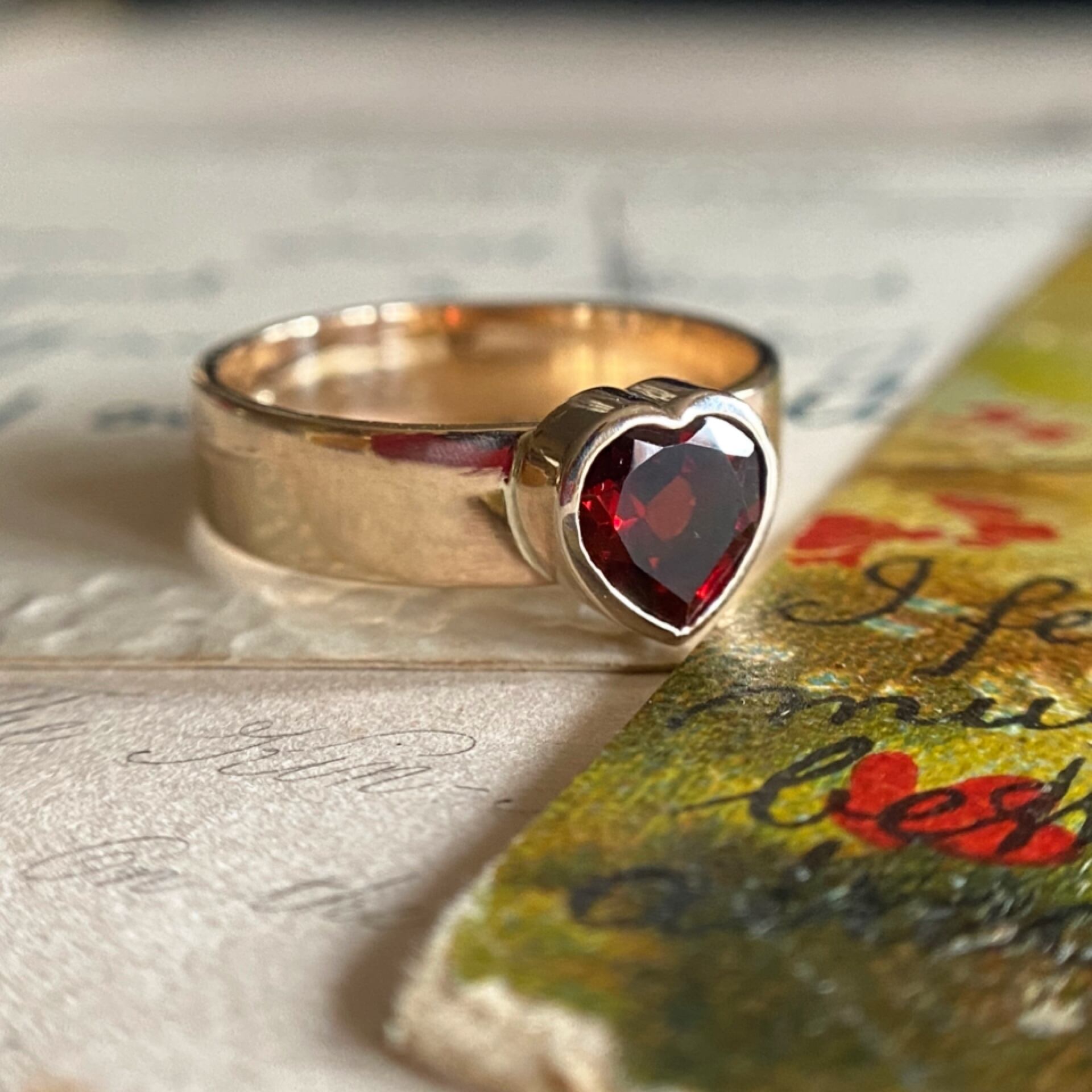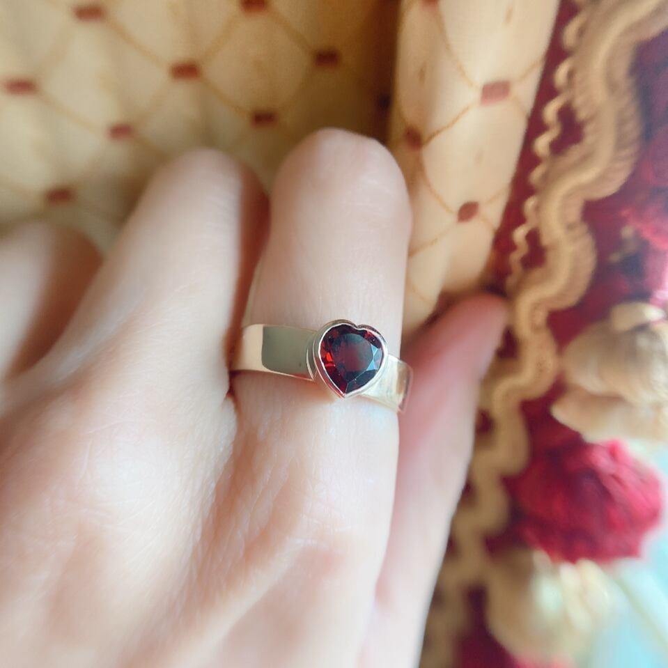 ハートのガーネットヴィクトリアンバンドリング