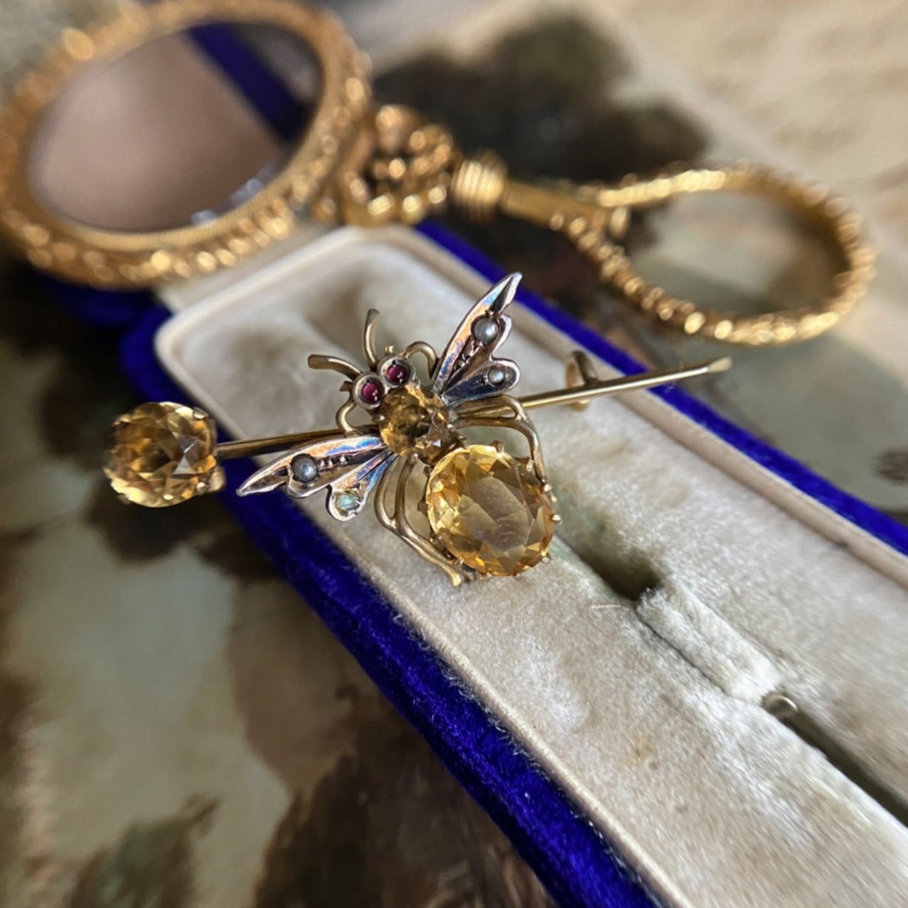 こちらは幸運を運んでくれると言われる蜜蜂のバーブローチ。