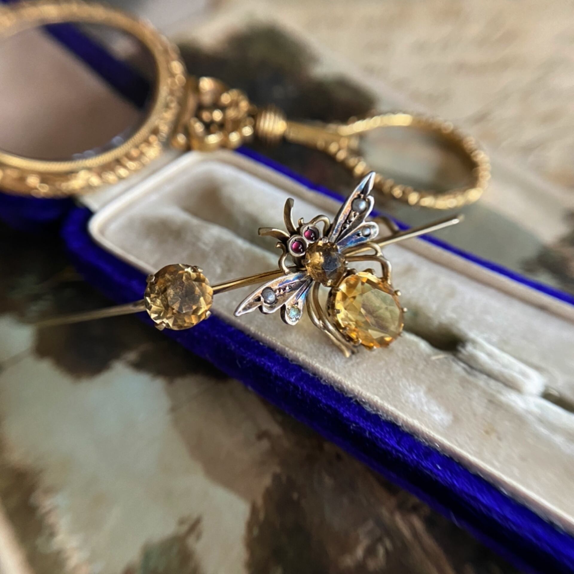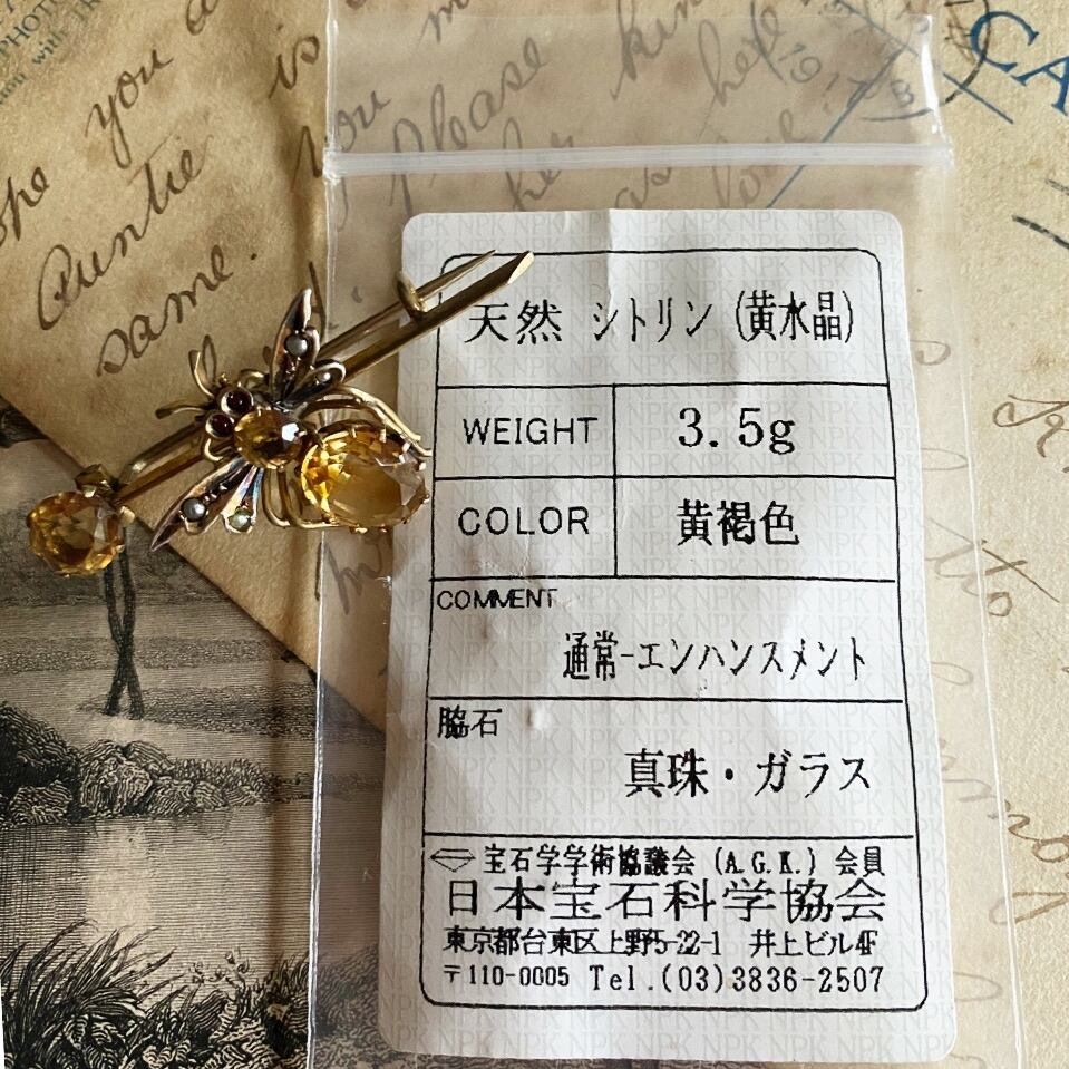 このタイプの昆虫ブローチはガラス製の物が多くありますが、このように天然のジュエルを使用していると、おもちゃぽくなく、造りがしっかりとしている為、アクセサリーではなくジュエリーとしての高級感をしっかりと感じる事ができるひと品です。