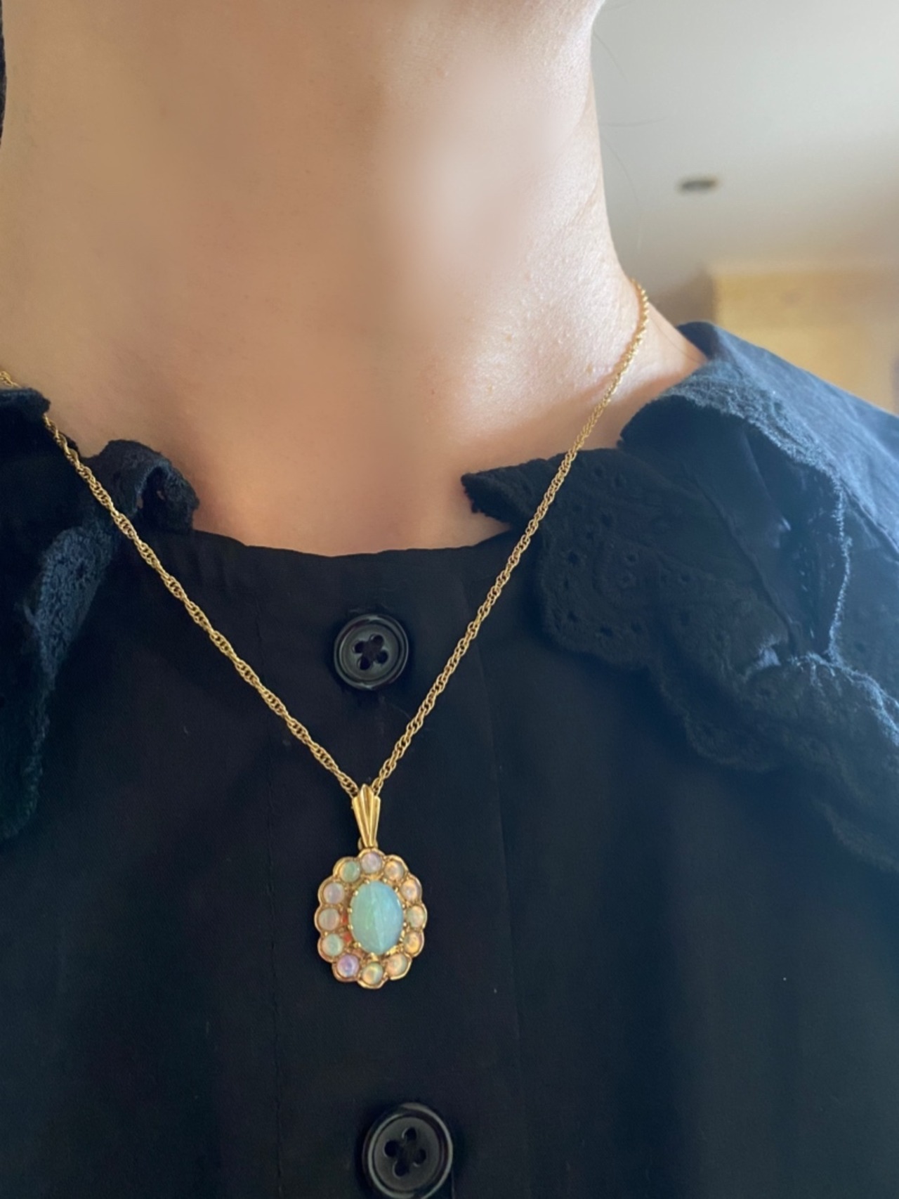 フェアリーのようなオパールのフラワークラスターペンダントネックレス