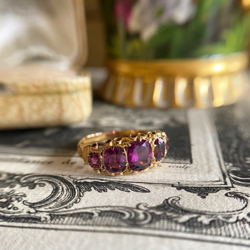 アーリーヴィクトリアンロードライトガーネットファイブストーンリング