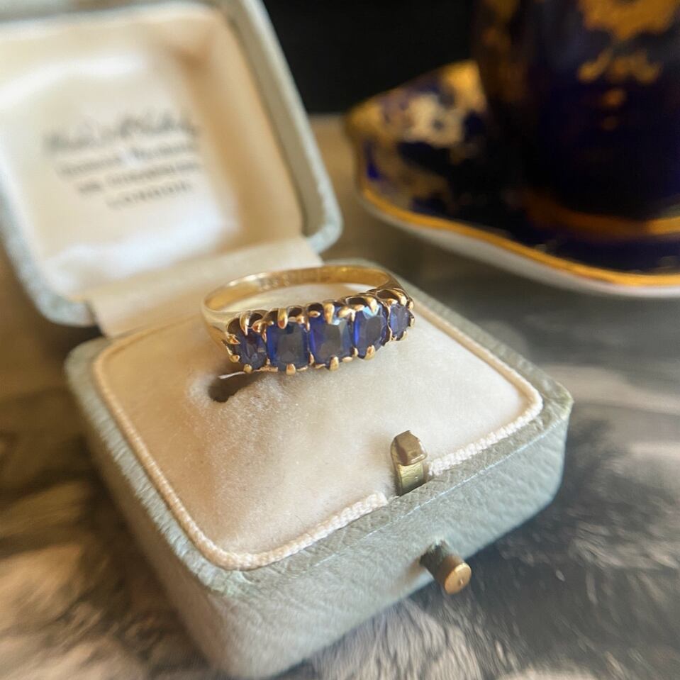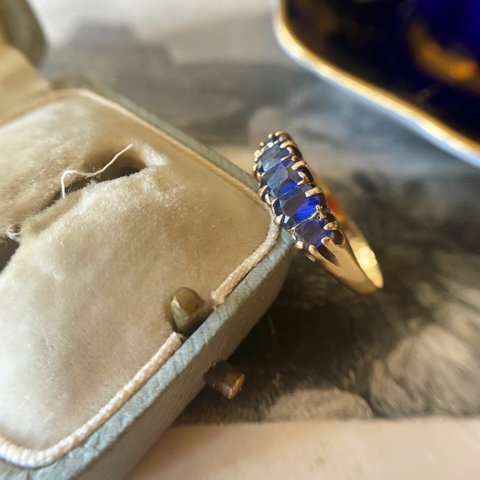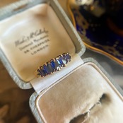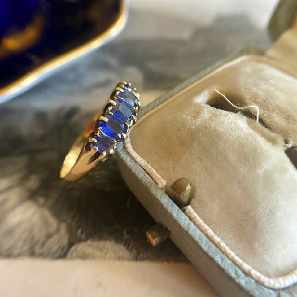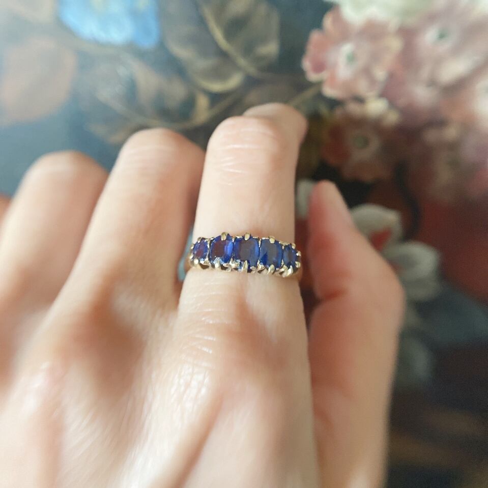 青色から連想する物ってその全てが美しいように、こちらのリングもただサファイアをシンプルに5石セットしただけのものですが、自然な深みを感じる落ち着いた蒼みが美しいひと品です。